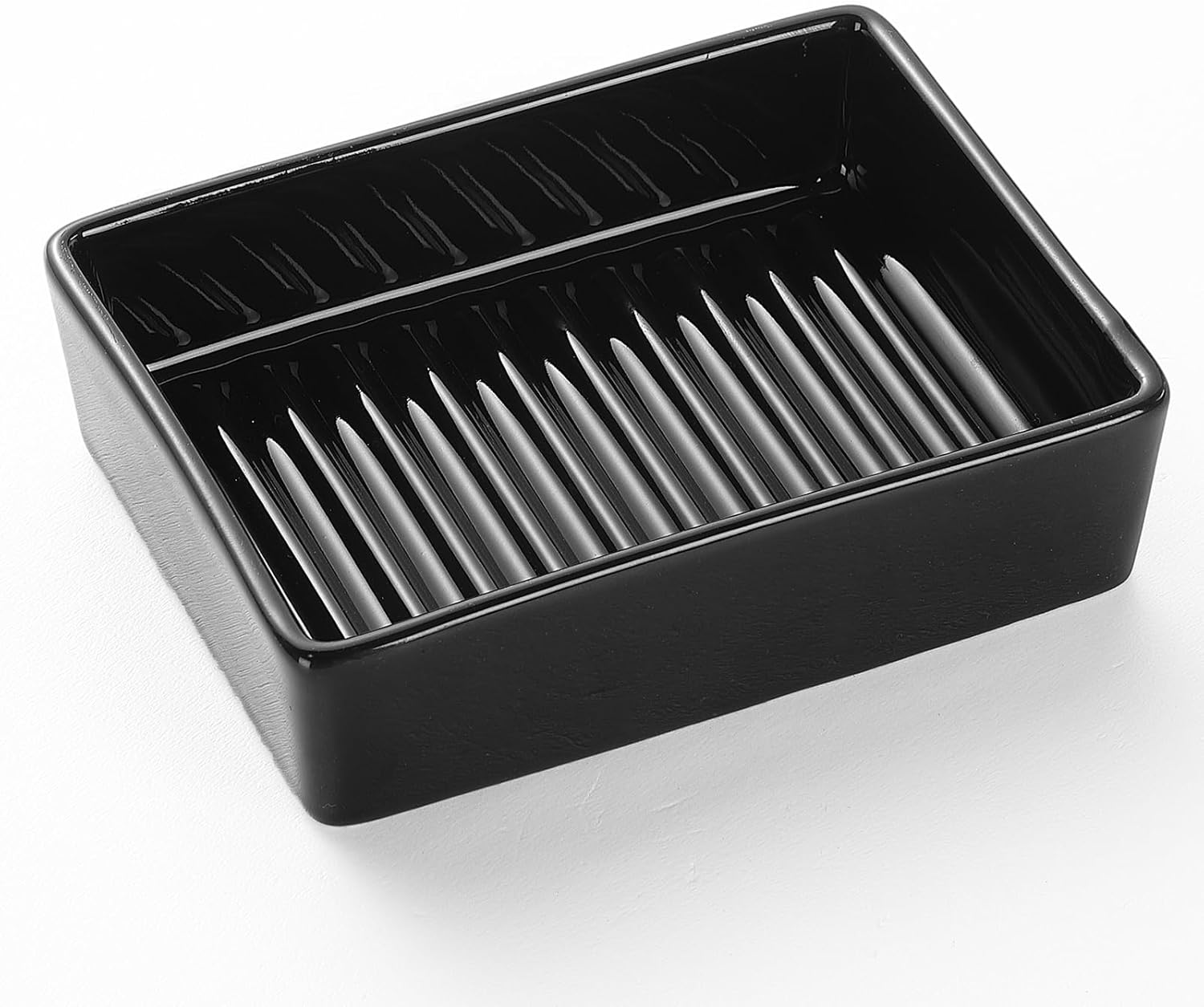 Black Rectangle Soap Dish - Modern Ceramic Hand Soap Holder Non-Slip Bar Soap Holder Soap Tray for Bathroom, Kitchen Sink, Shower, Countertop, Easy to Clean