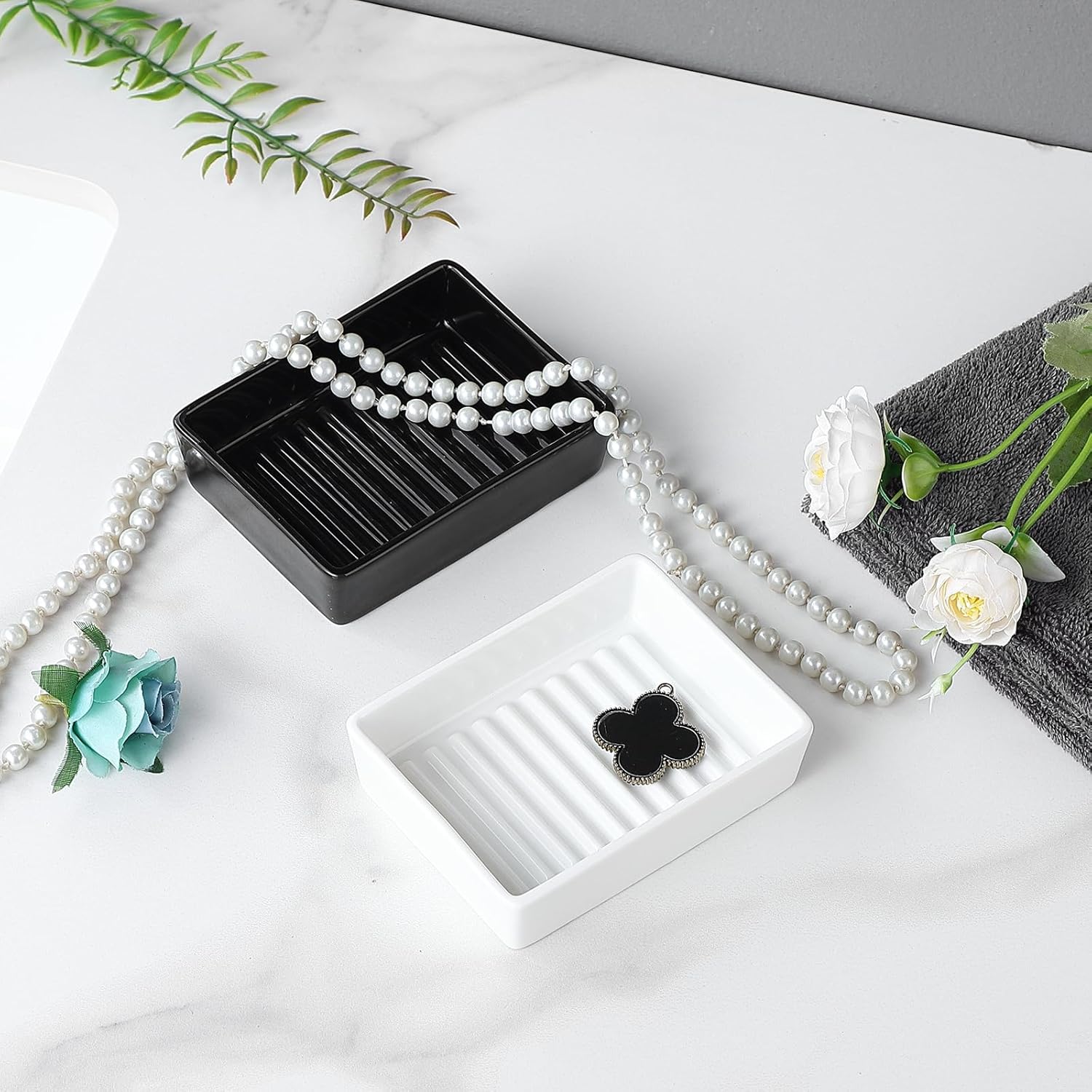- 【Modern】Eyrozia ceramic soap dish boasts a sleek and contemporary design, featuring rounded edges that elegantly hold rectangular soap. Its chic addition to any bathroom or kitchen decor effortlessly complements any color theme, adding a touch of contemporary charm.