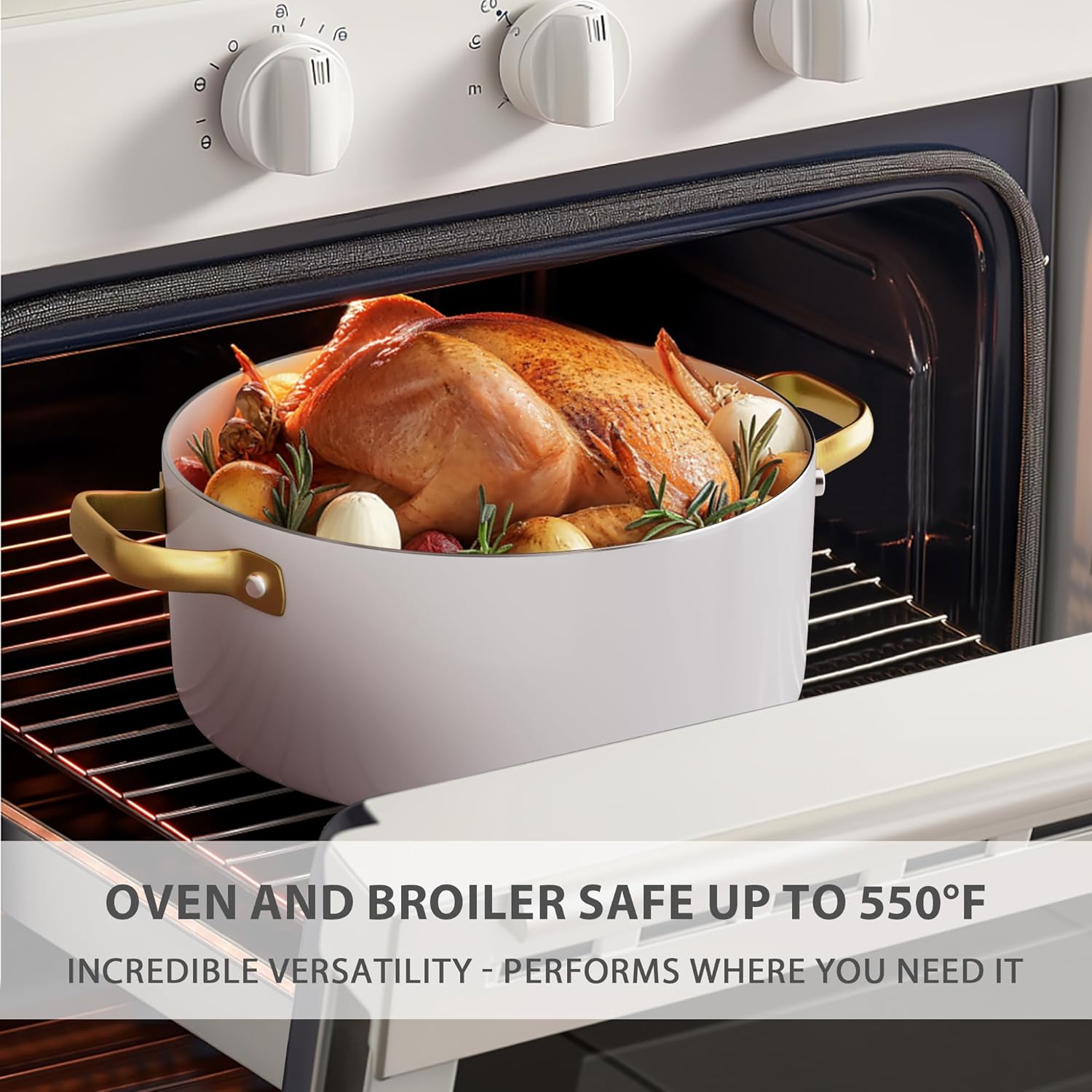 - 【For all Stovetops Except Induction】- The nonstick cookware set does not have a magnetic induction bottom, which allows faster heating on other cooktops, saving time and energy. Oven safe up to 550°F.