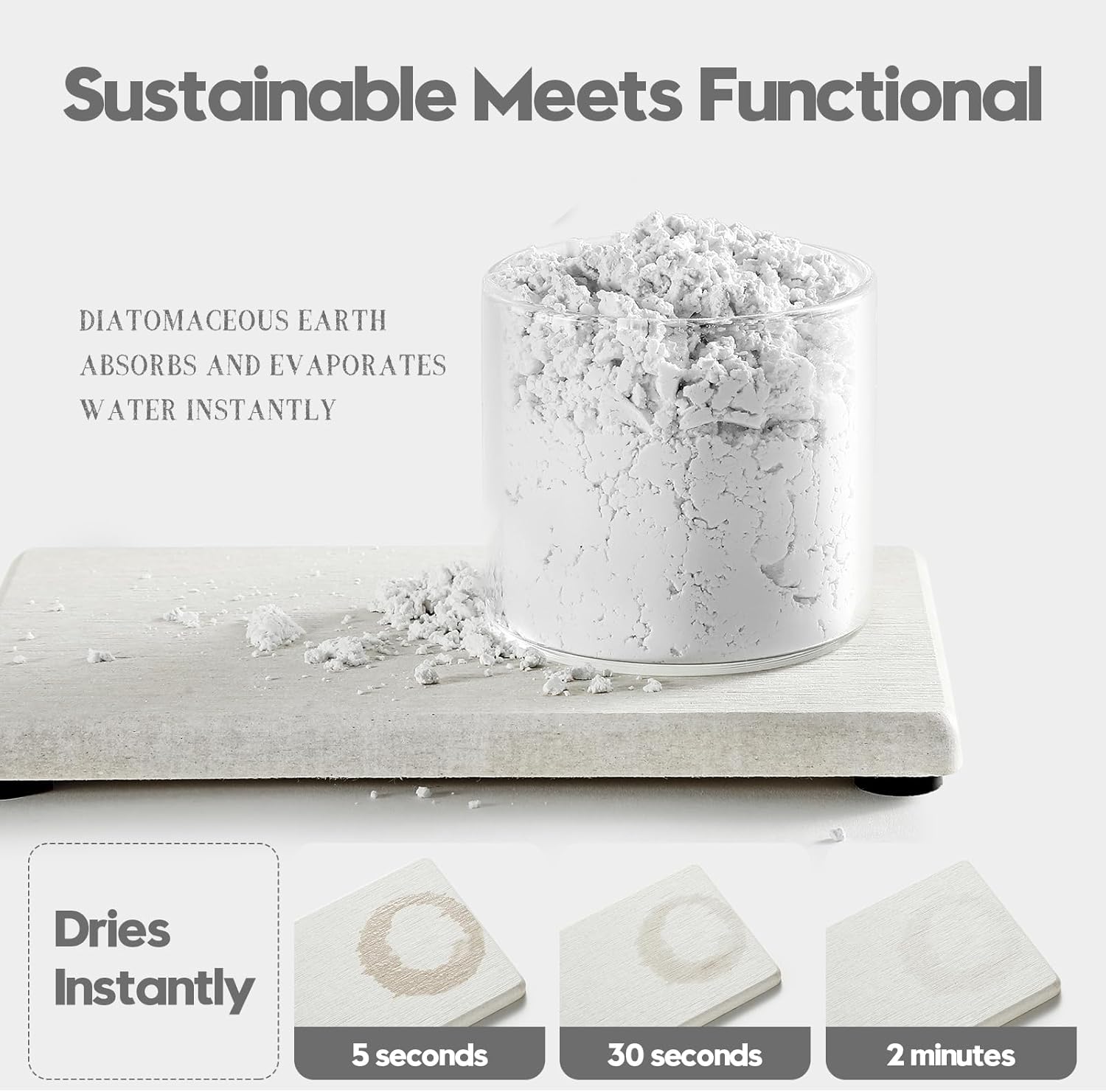 - 【Sustainable Materials】Natural diatomaceous earth dries instantly thanks to its ability to evaporate moisture. Safe, Sustainable and Long-lasting