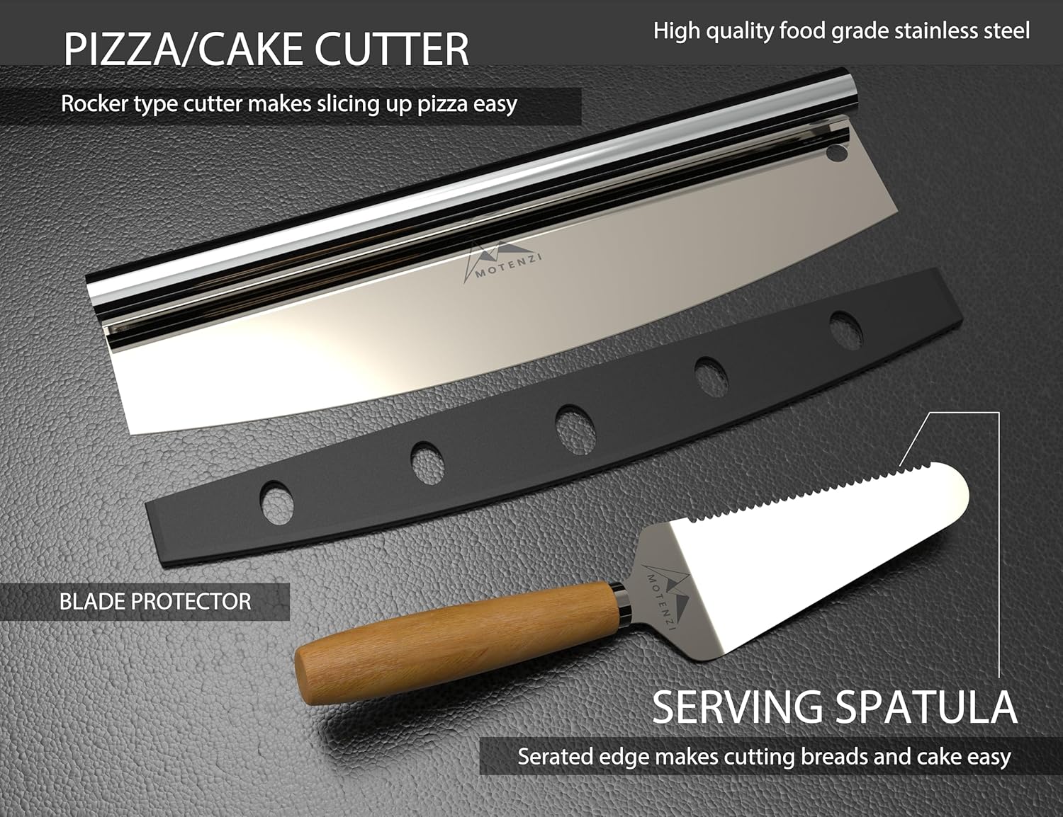 - Effortless Slicing & Serving - Beyond pizza shovel, Our pizza cutter features a razor-sharp stainless steel blade that effortlessly slices through even the thickest pizza crusts. The pizza server boasts a sturdy stainless steel construction with a wide, ergonomic handle, allowing for easy and precise serving.