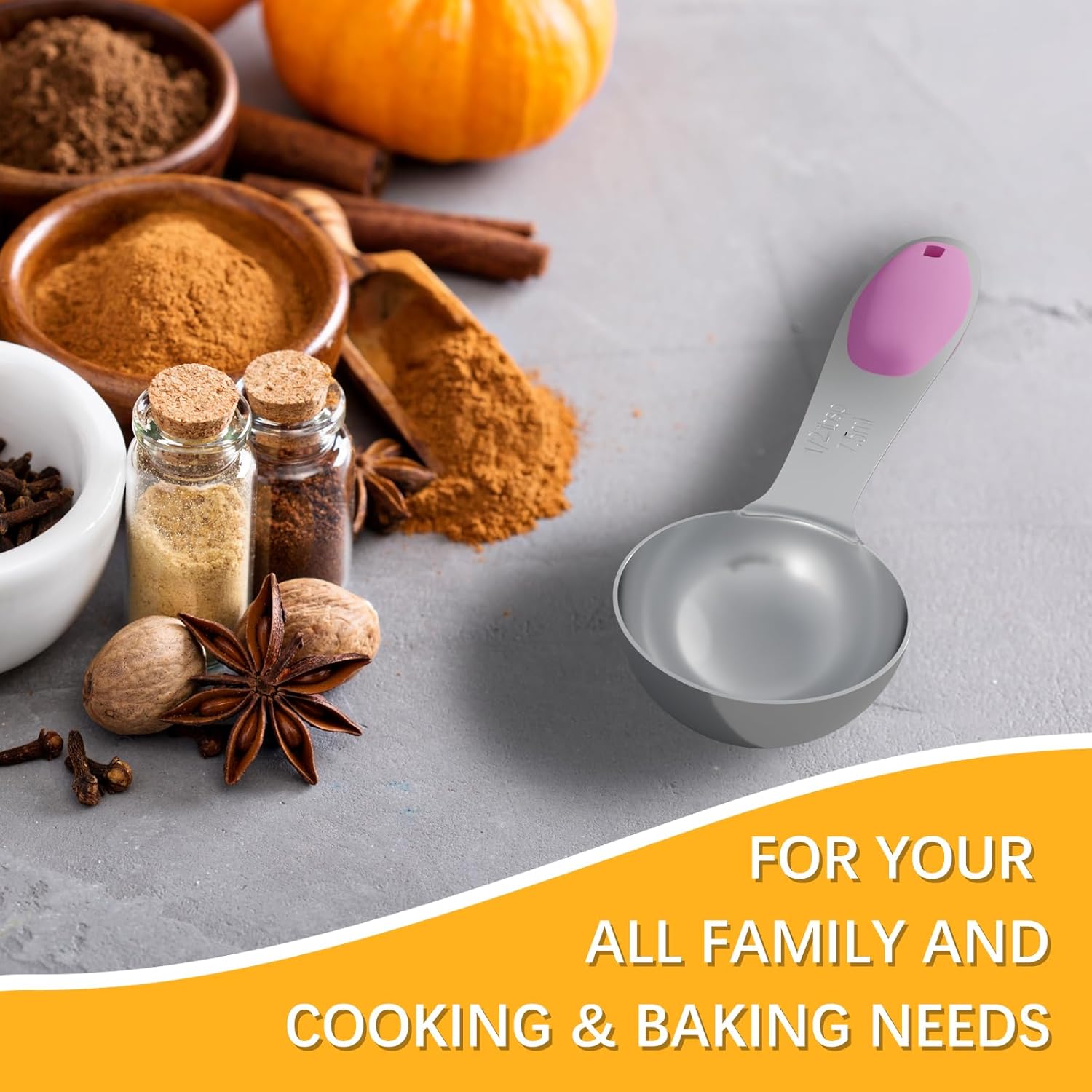 2PCS 1/2 Tbsp(1.5tsp, 1/4oz, 7.5ml) Single Measuring Spoon with Pink Silicone Grip, Stainless Steel Individual Measure Scoop Only