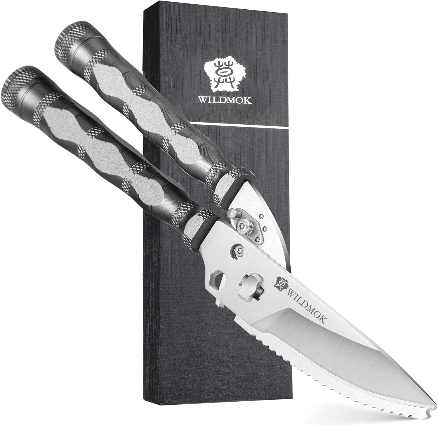 WILDMOK Heavy Duty Poultry Shears - 8.5 Inch Multi-function Stainless Steel Poultry Outdoor Shears, Ultra Sharp Kitchen Scissors for Outdoor Camp, Grey