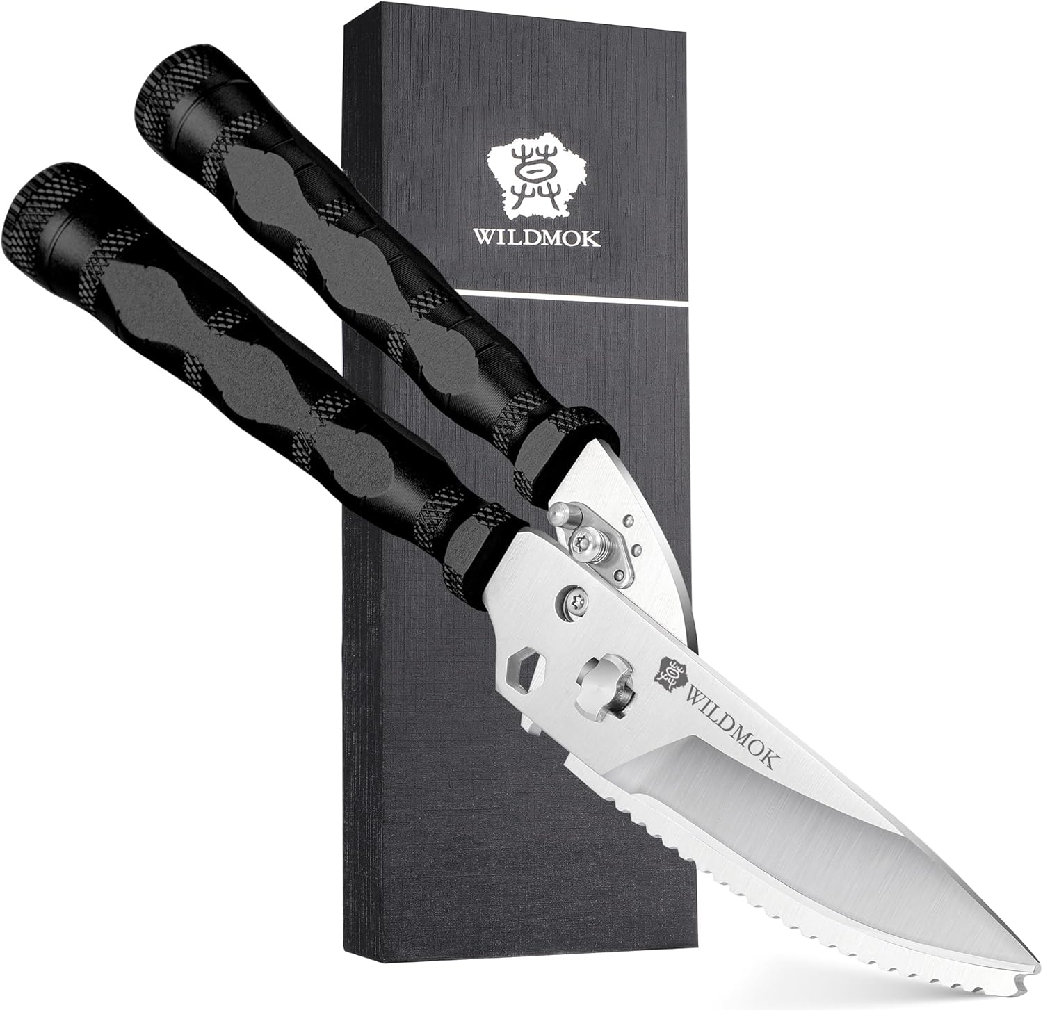 WILDMOK Heavy Duty Poultry Shears - 8.5 Inch Multi-function Stainless Steel Poultry Outdoor Shears, Ultra Sharp Kitchen Scissors for Outdoor Camp, Black