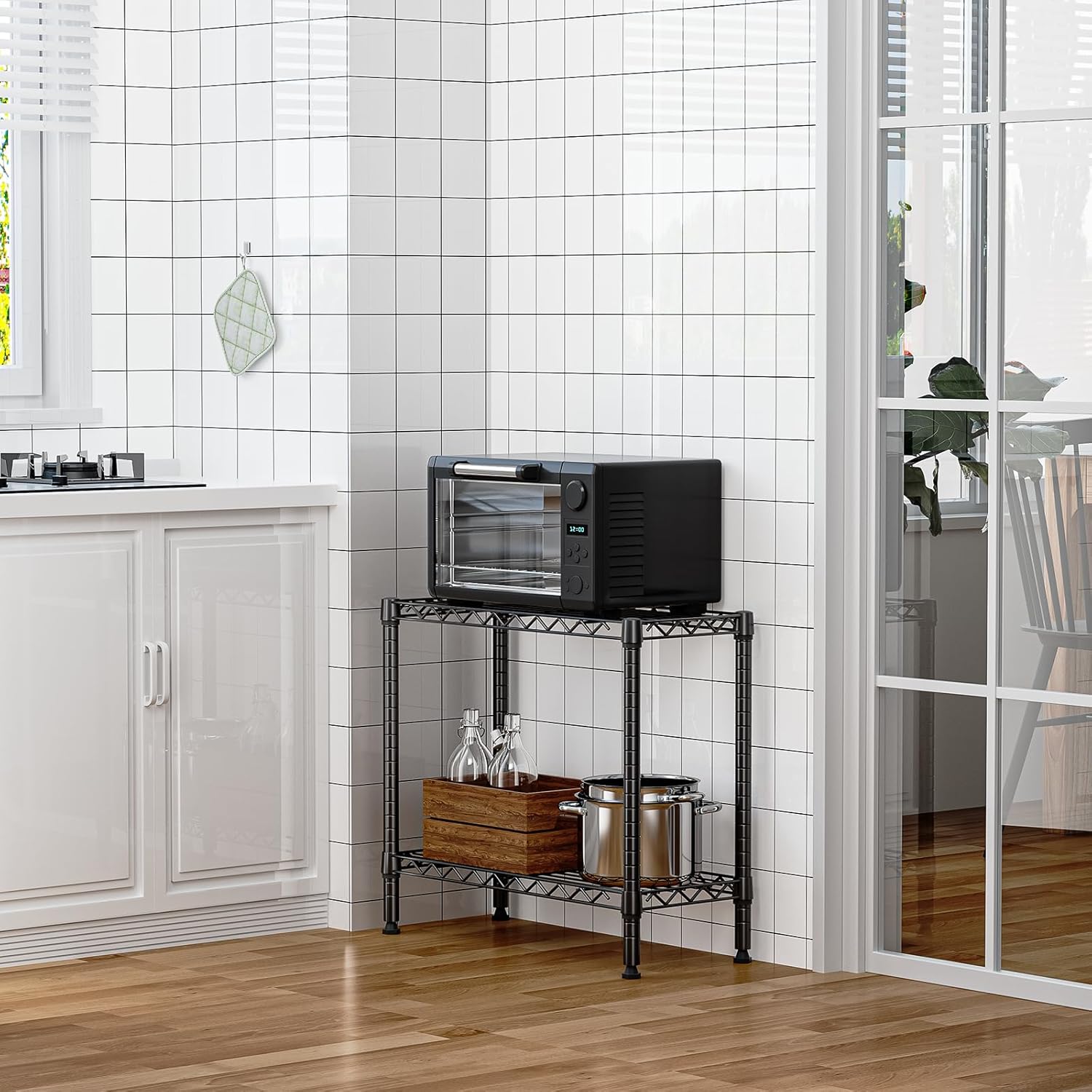 MZG 220 lbs 2 Tier Storage Rack Metal Wire Shelving Unit, Storage Standing Household Shelf Organizer for Laundry Bathroom Kitchen Pantry Closet Basement Utility Room, Black 11.8" D x 27.6" W x 23.4" H