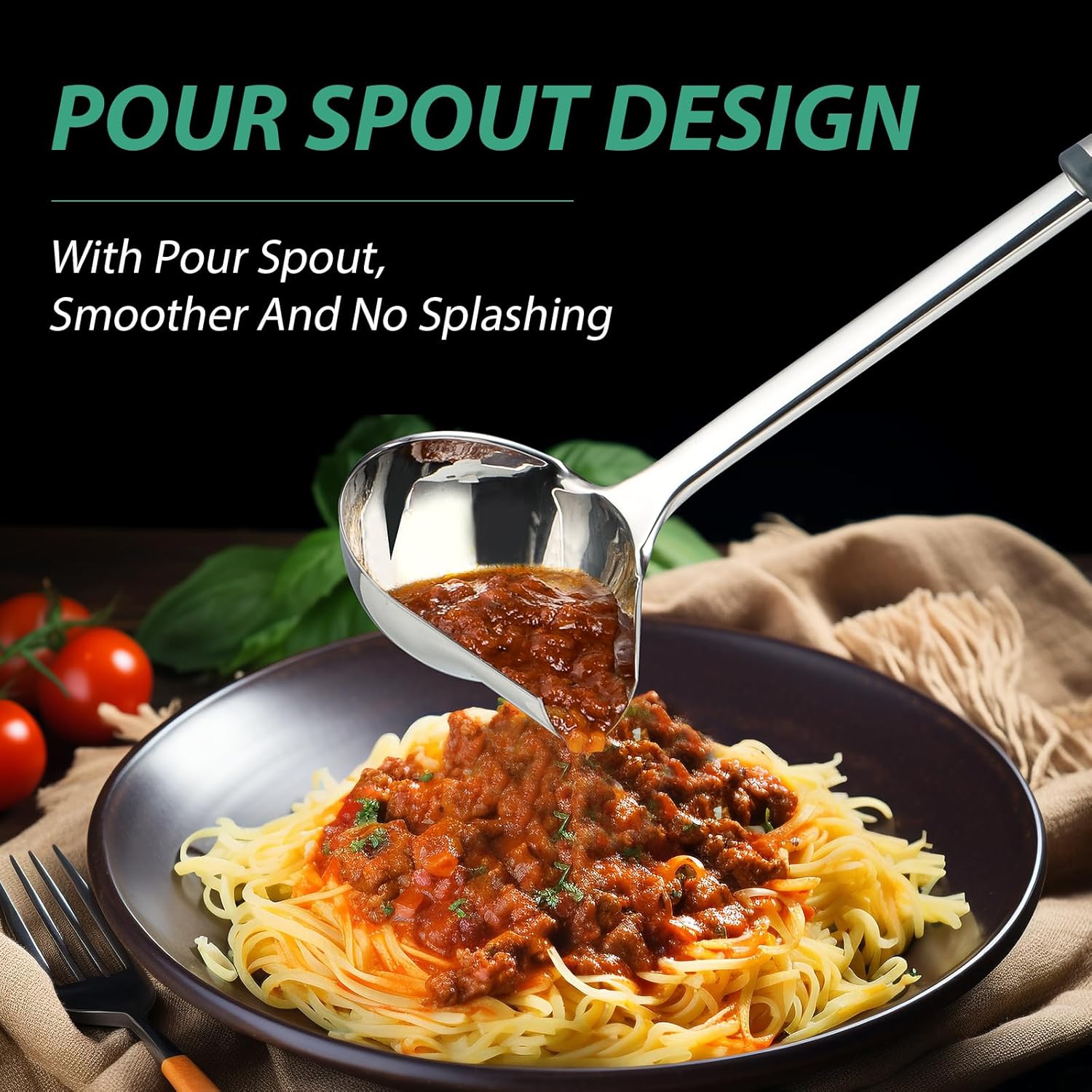 Gravy Ladle with Spout, Stainless Steel Large Ladles for Serving Sauce, Metal Ladle with Long Handle for Kitchen, Comfortable Grip, Durable Construction, Silver (4 oz)