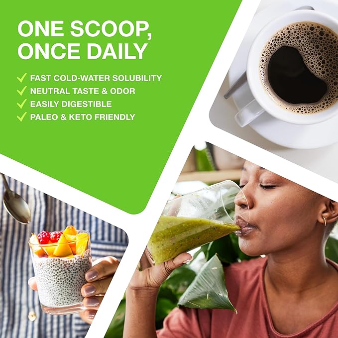 • Made for Modern Diets: Tasteless and odorless, our collagen easily integrates into daily routines, ideal for paleo, keto & dairy free diets. Enjoy enhanced benefits with just one scoop a day in your morning coffee, smoothie, oatmeal and more.