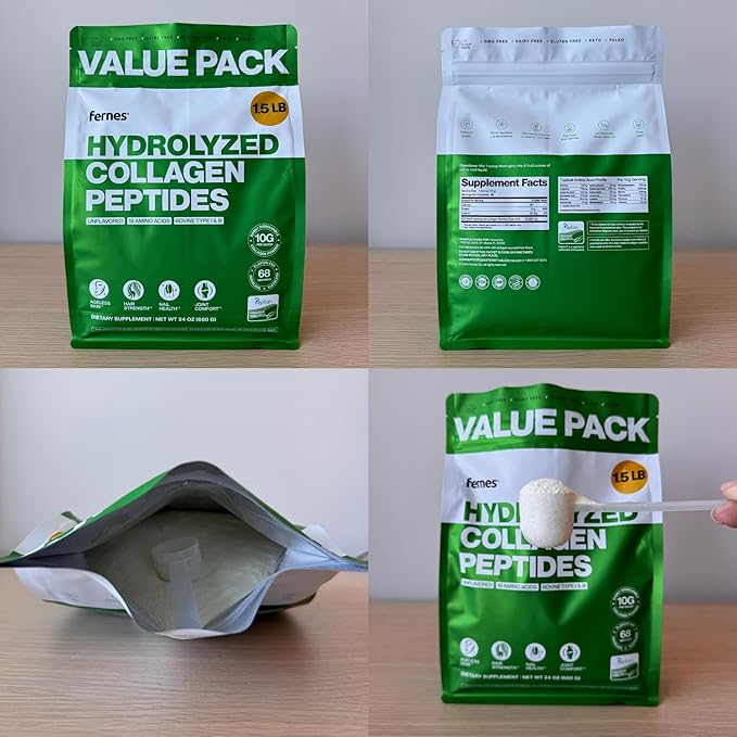 • Collagen Peptides Powder: Fernes Collagen offers 10g of patented Peptan collagen peptides per serving, enriching skin, hair, and nails while promoting joint flexibility. Scientifically backed collagen supplements, help reduce fine lines for a more radiant look.*