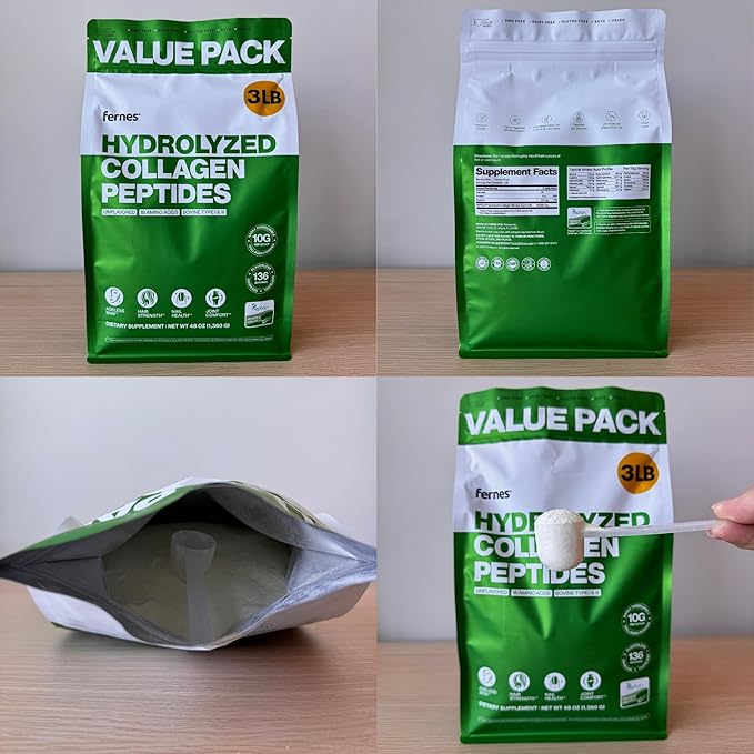 Hydrolyzed Collagen for Women Men (3LB) Type I & III Flavorless & Odorless Easy-Mix Powder Peptan Protein Peptides Joint Hair Skin & Nail Support Gluten-Free Non-GMO Keto Paleo Grass-Fed Kosher