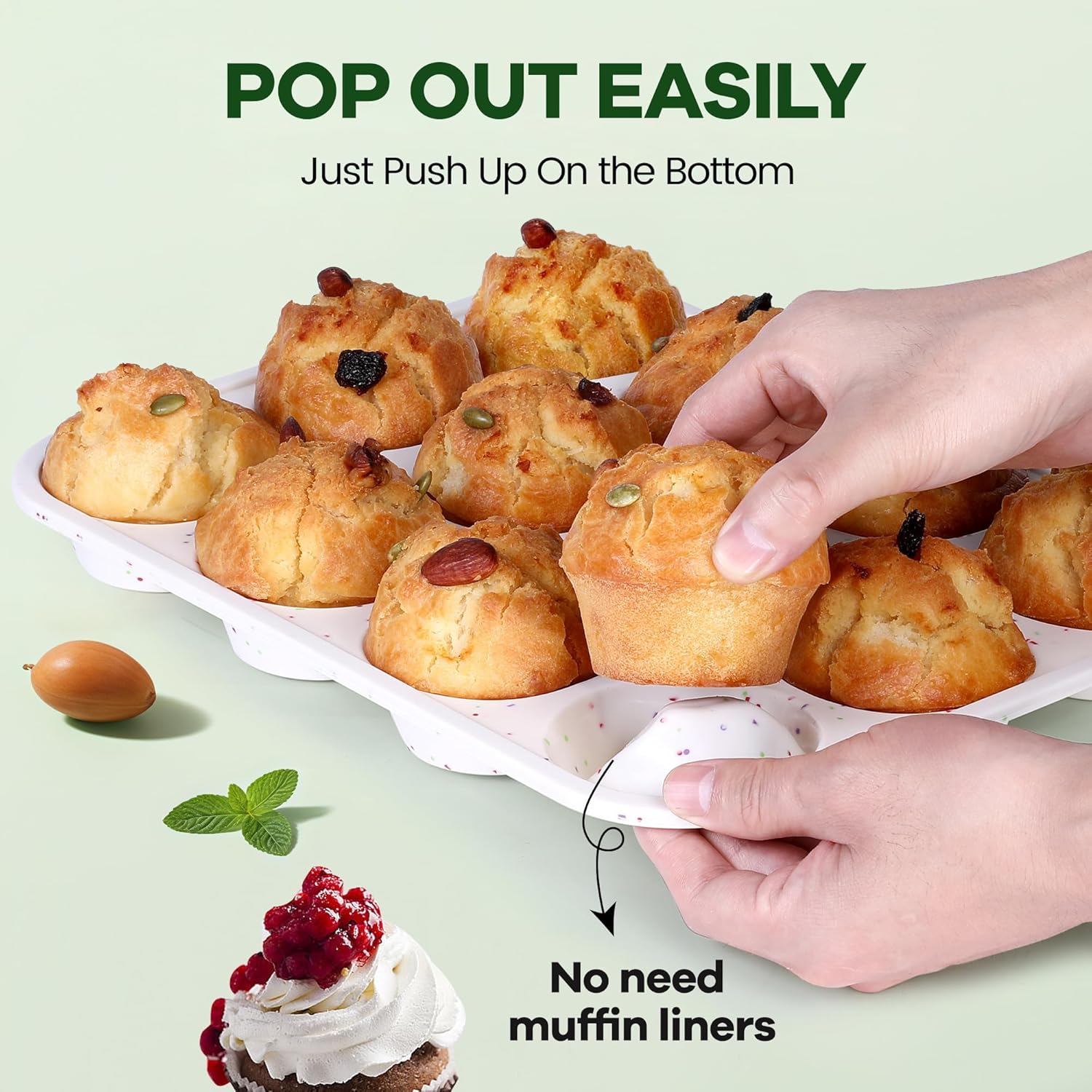 - Non-Stick & Easy to Release - The high-quality silicone material offers a non-stick surface, allowing for easy release of your baked goods without the need for greasing or cooking spray. Enjoy perfect muffins and cupcakes that pop right out.