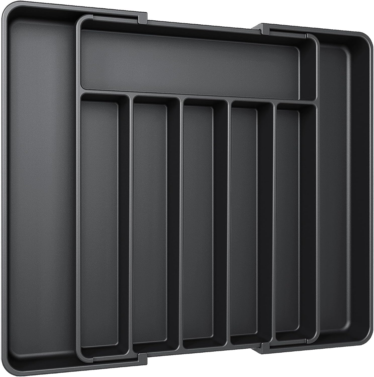 Aujen Silverware Organizer - Expandable Kitchen Drawer Organizer, Adjustable Utensil Organizer, Cutlery Tray for Forks, Knives, Multipurpose Kitchen Organizers and Storage Solution, Black, Large