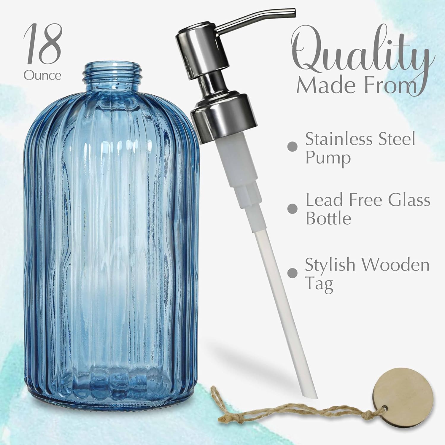 - FUNCTIONAL GLASS SOAP DISPENSER WITH STURDY PUMP: Made of Premium Blue Glass with 304 Stainless Steel Pump for Long Lasting Brightness And Rust Proof.