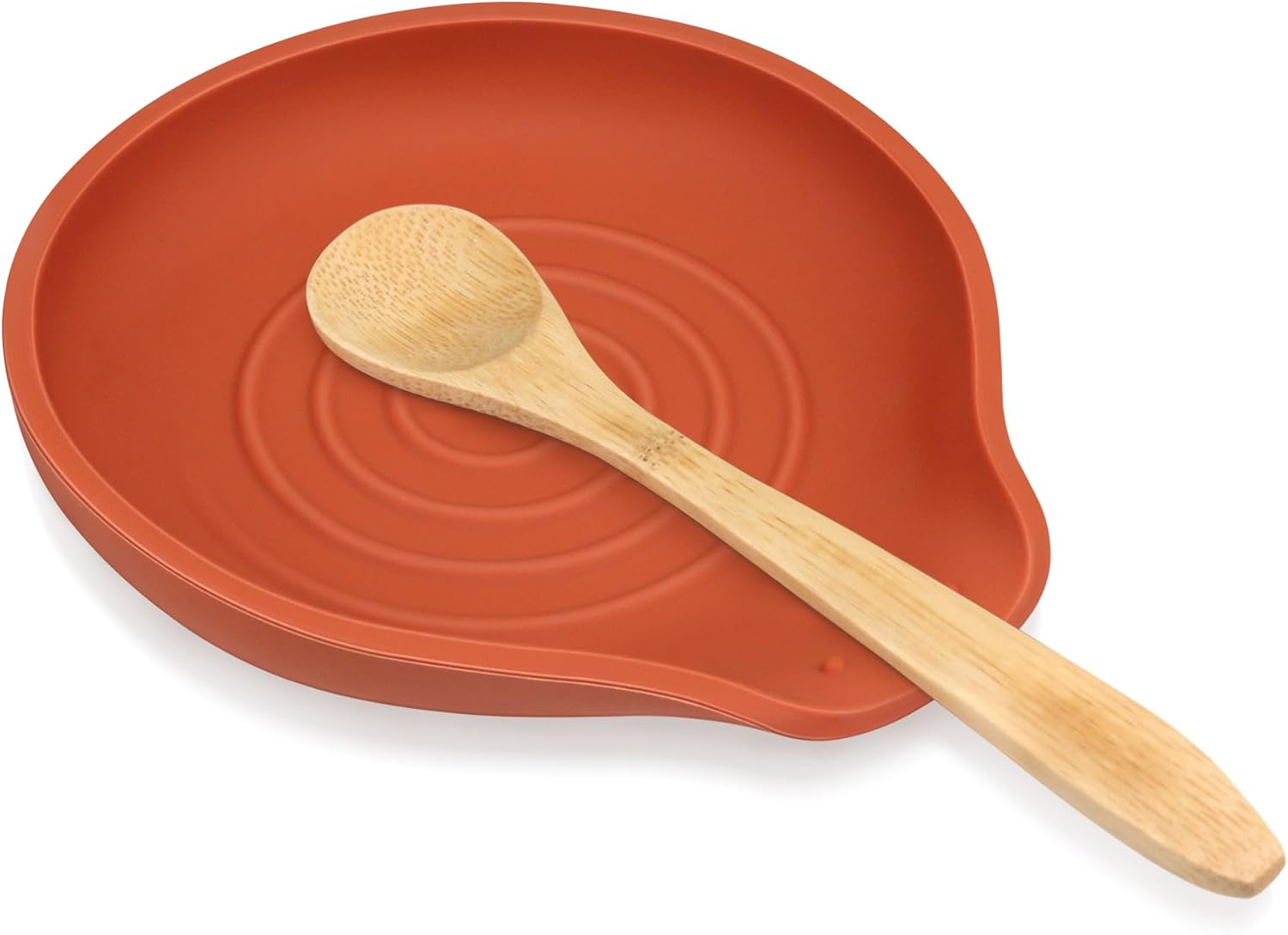 Silicone Spoon Rest for Stove Top - BPA-Free, Heat-Resistant Spoon Holder - Spoon Rest for Kitchen Counter - Large Cooking Utensil Rest for Spoons, Spatulas, Ladles or Tongs - Orange Red
