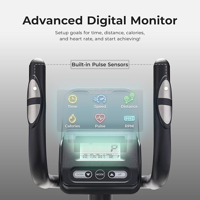 • 【DIGITAL MONITOR w/ TARGETING FUNCTION】Personalize your training by setting time, distance, calorie, and heart rate goals. Track progress in real-time with the advanced digital monitor and use the built-in pulse sensor for precise workout metrics.