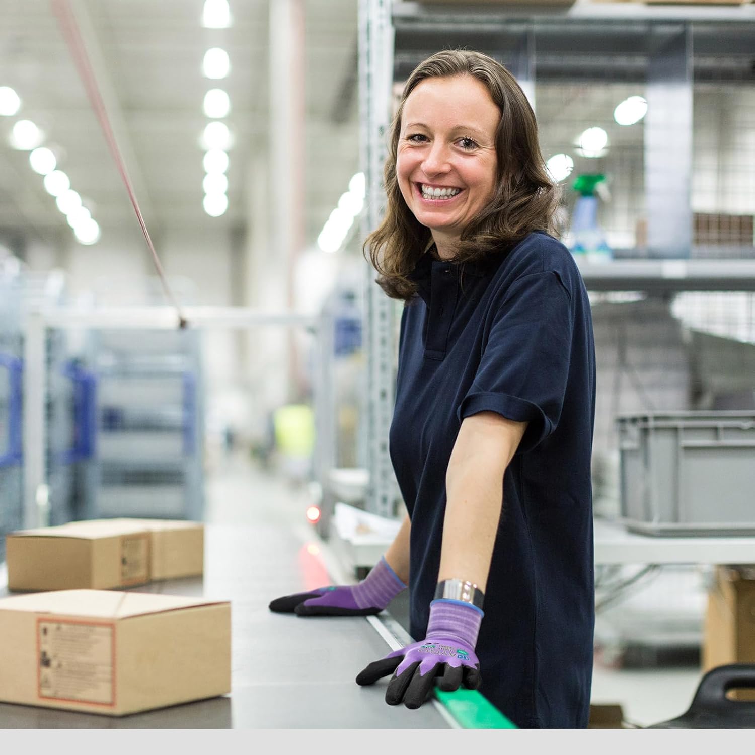 KAYGO Safety Work Gloves MicroFoam Nitrile Coated, 12 Pairs KG18NB,Seamless Knit Nylon Glove for Men and Women, Ideal for Automotive,Warehouse,Construction (M, Purple)
