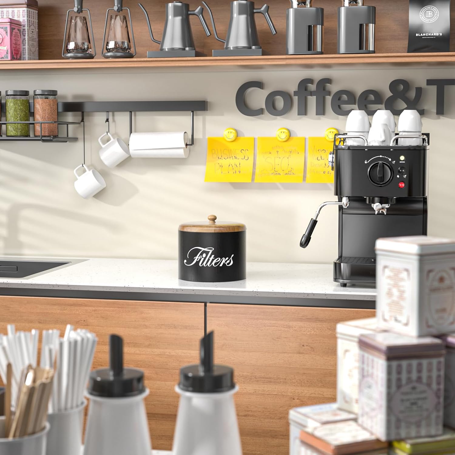 - 【Sturdy Coffee Bar Decor】: Our coffee filter holder storage is made from wood, Smooth surface are straightforward to clean, wipe with a damp cloth. It is a nice decoration in your Kitchen Counter, coffee bar decor