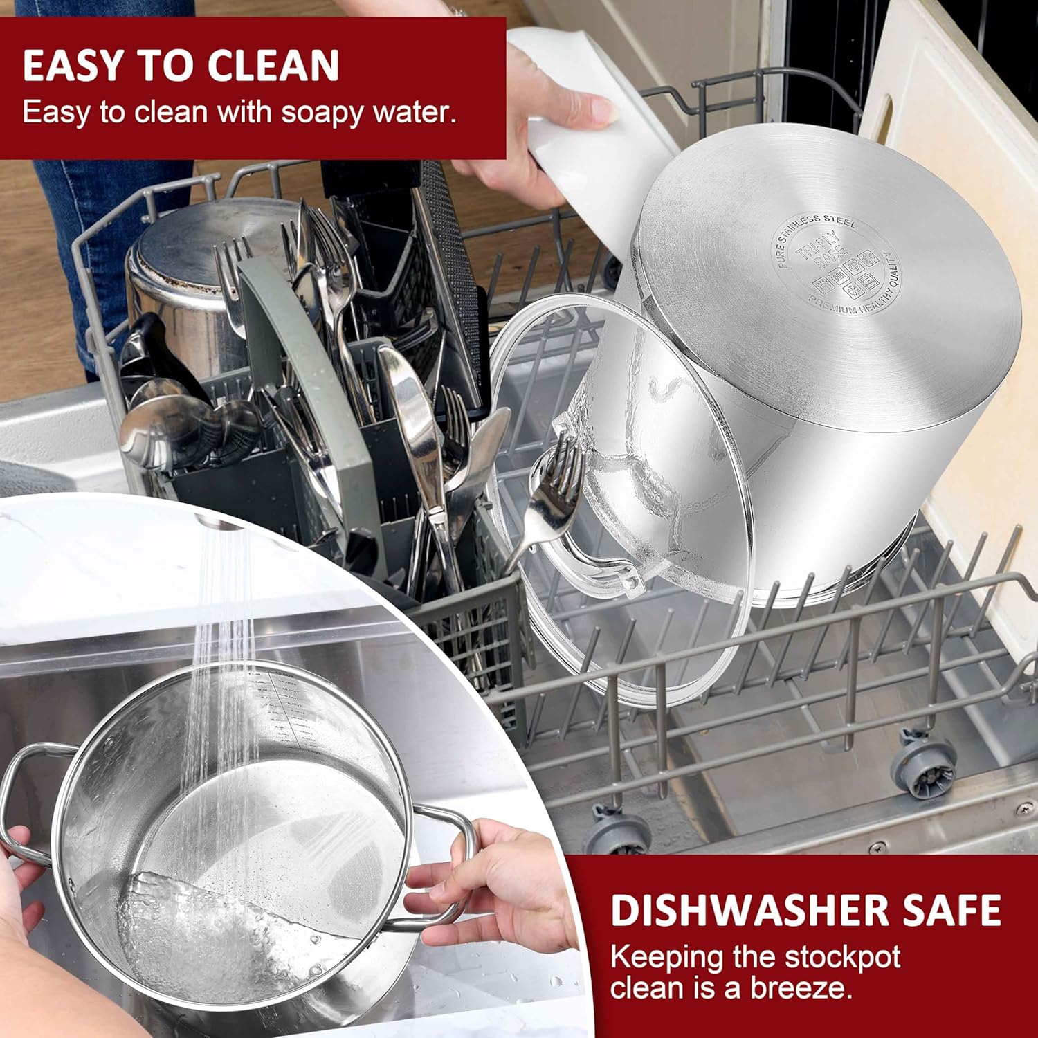 - Premium Quality, constructed from food-grade 18/10 stainless steel, this 12 qt stock pot is heat and corrosion resistant to protect against harmful chemicals and ensure superior durability, its mirror-polished surface is easy cleaning and dishwasher safe