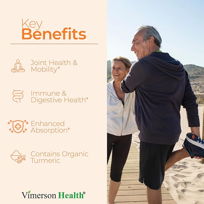 • JOINT HEALTH AND MOBILITY - Premium organic Turmeric Curcumin with Black Pepper (BioPerine). This Turmeric supplement offers natural joint comfort and mobility support, promoting ease of movement in your joints. A trusted choice to ease everyday discomfort. Take daily as part of your wellness routine to stay active. 2-pack for a convenient 2-month supply (120 capsules).*