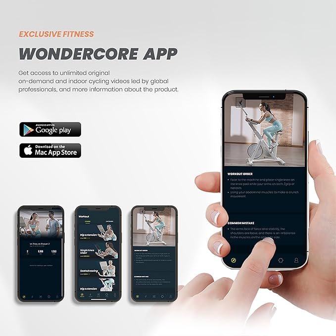 • 💪【WONDER CORE APP】Pair the Wondercise Bike with the Wondercise app for exclusive features and content. Including synchronizing the data on the BIKE to the mobile phone APP, reading the detailed product manual, watching the installation video, product usage tips and methods, and video courses from professional coaches, etc.