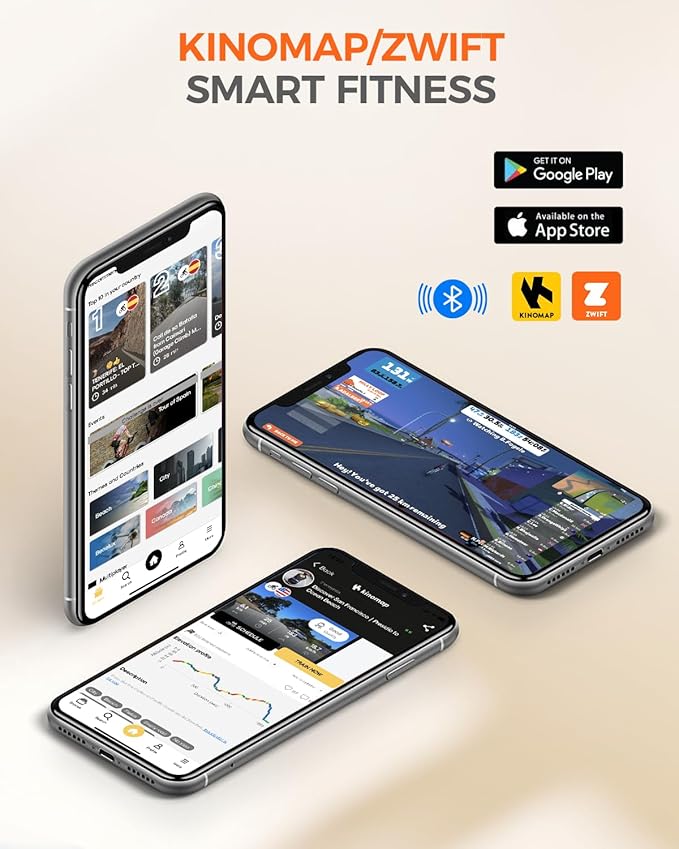 • Connection to Fitness APP: Built-In Sensor, compatible with KINOMAP, Zt APP. With KINOMAP/Zt Smart Fitness APP, you can record and view training data and share fitness data on social media. Make your exercise more fun