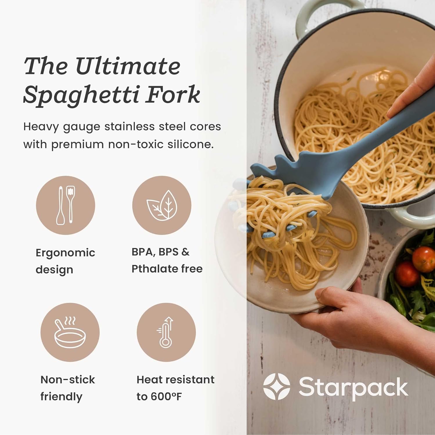 Starpack XL Premium Silicone Pasta Fork (13.5") - Spaghetti Spoons High Heat Resistant to 600°F - Silicone Pasta Spoon Strainer - Server Spoon with Teeth - Server Utensil for Pastas