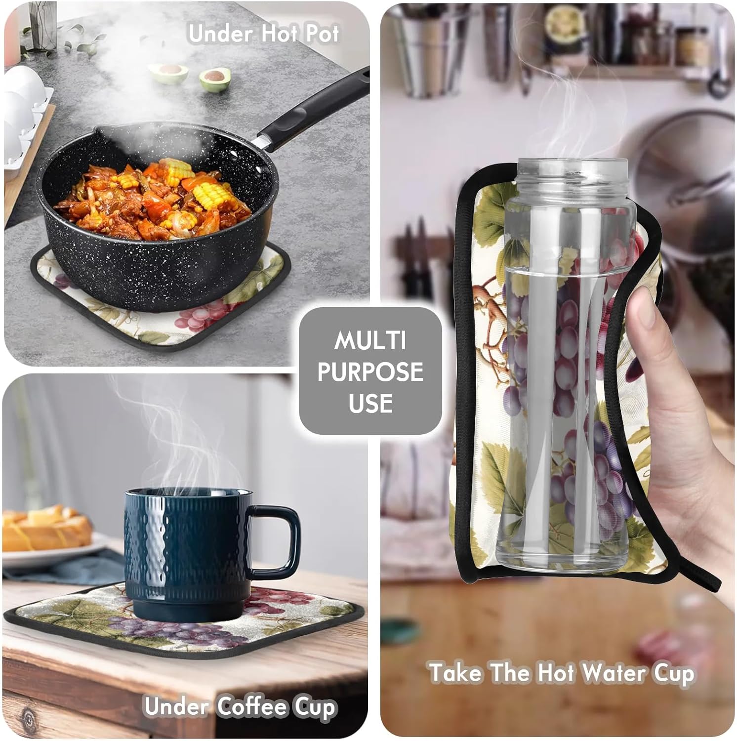 Vintage Grapes Vine Oven Mitts and Pot Holders Sets, 2 Pcs Decorative Kitchen Oven Glove for Cooking