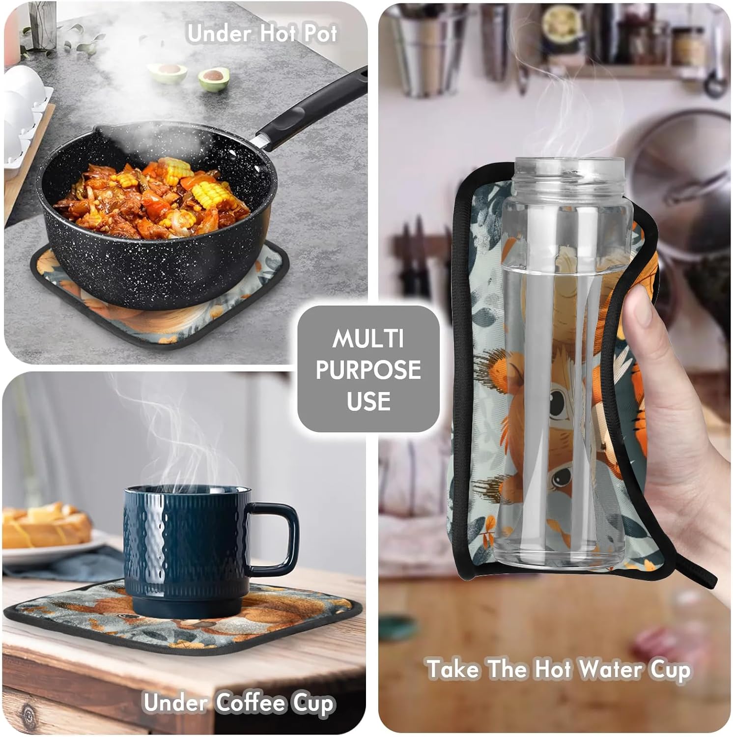 Squirrel Fall Oven Mitts and Pot Holders Sets, 2 Pcs Decorative Kitchen Oven Glove for Cooking