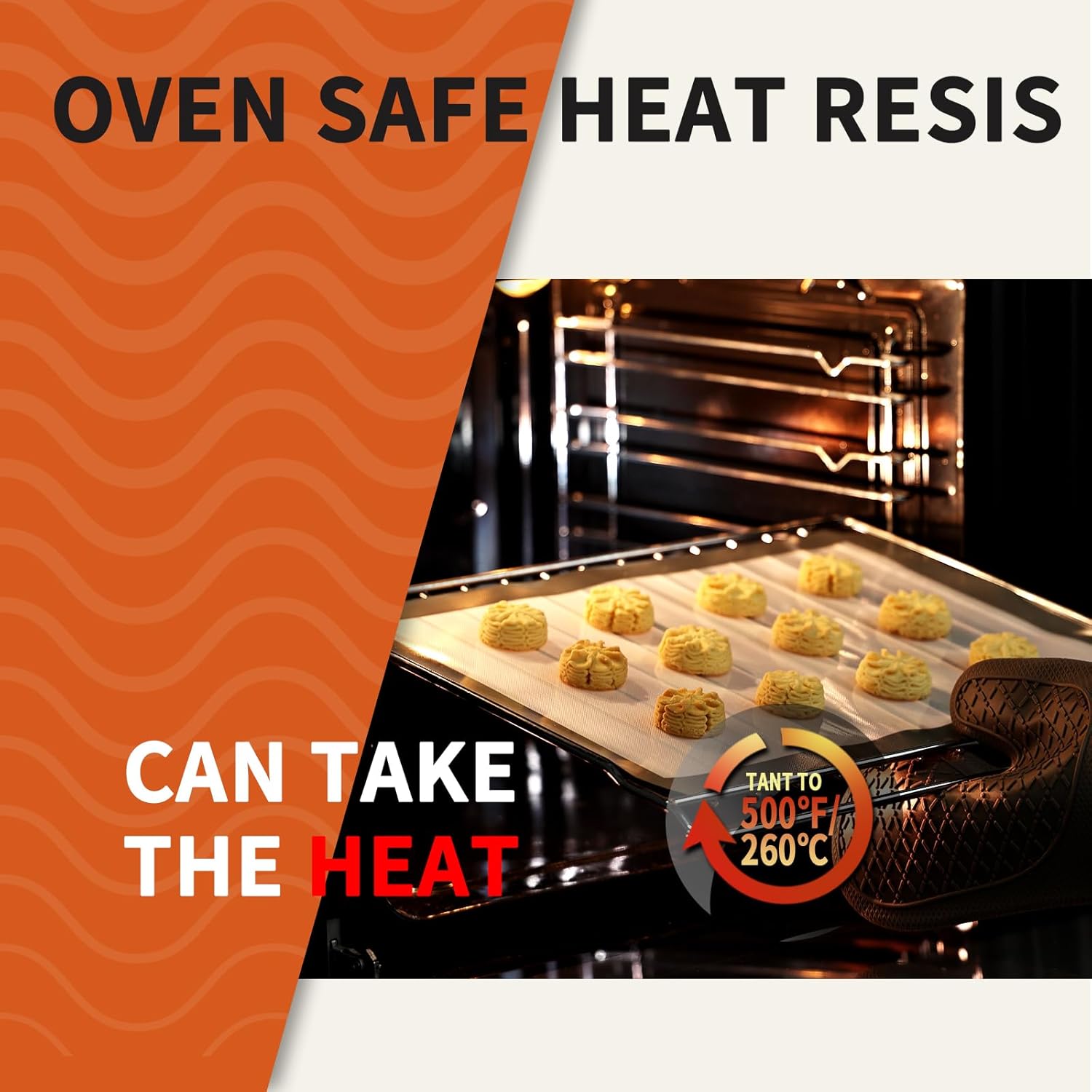 - Premium Material & Food Grade Silicone: This silicone baking mat is made of food-grade silicone and reinforced with high-quality glass fiber, BPA-free. The baking mat boasts excellent heat resistance and durability, capable of withstanding a wide temperature range from -40°F to 500°F (-40℃ to 260℃), suitable for various ovens, microwaves, and even refrigerators.