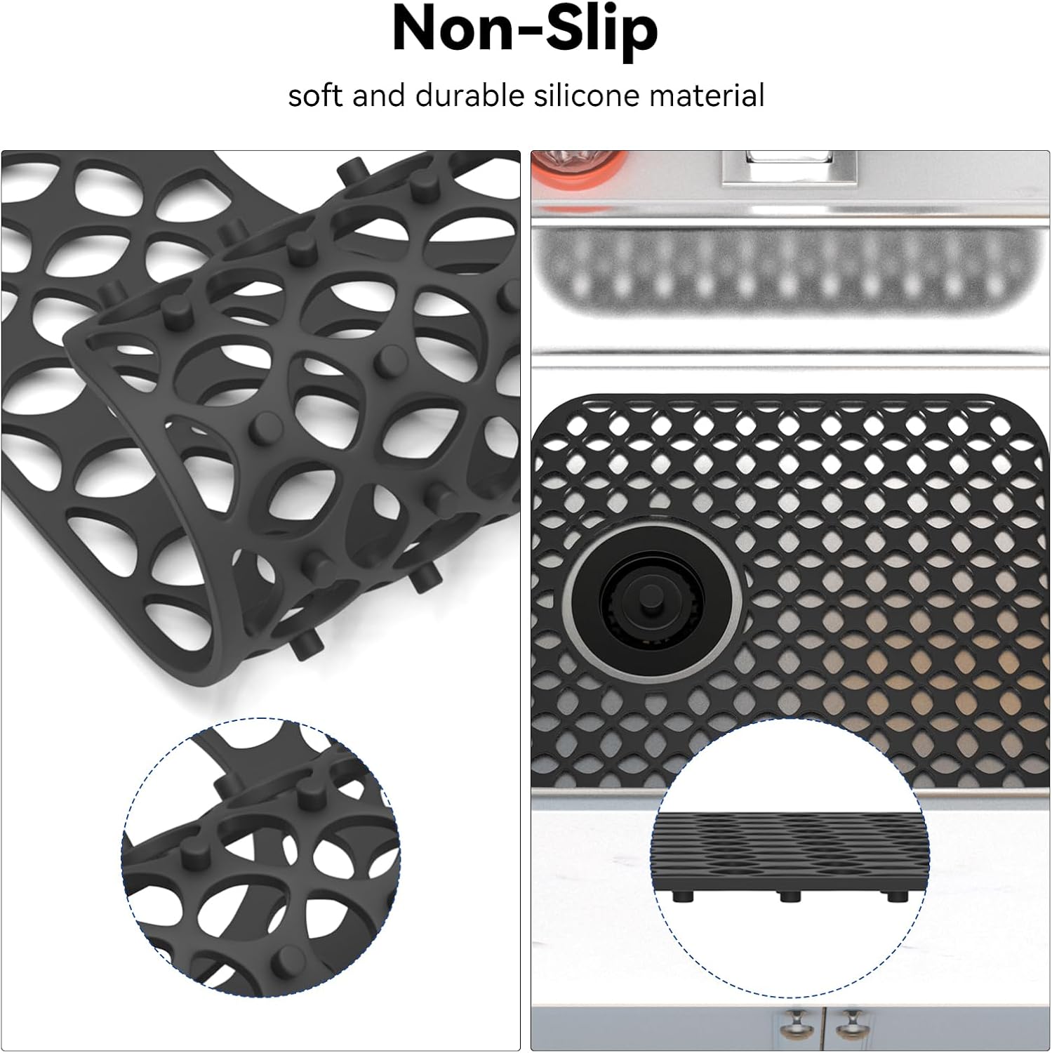 - Raised Sturdy Bottom Feet Design: Non-slip and raised feet elevate the kitchen sink mats with drain hole to allow little food particles and water run through it. Also work as a dish drying mat under the sink.