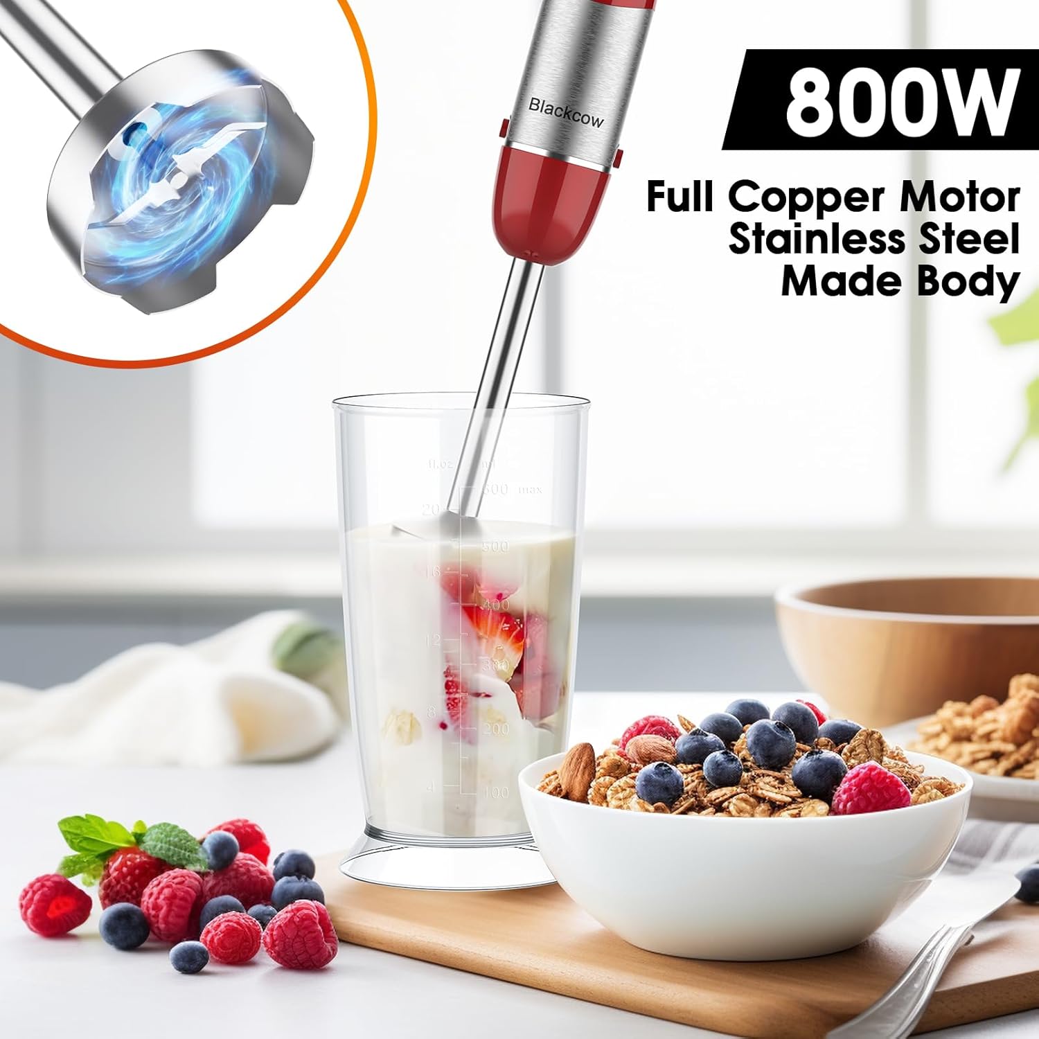 - Quiet and Powerful: This 800W copper motor hand blender is ETL certified for safety and efficiency. The high-quality ABS body effectively reduces vibration and noise, providing an exceptional user experience.