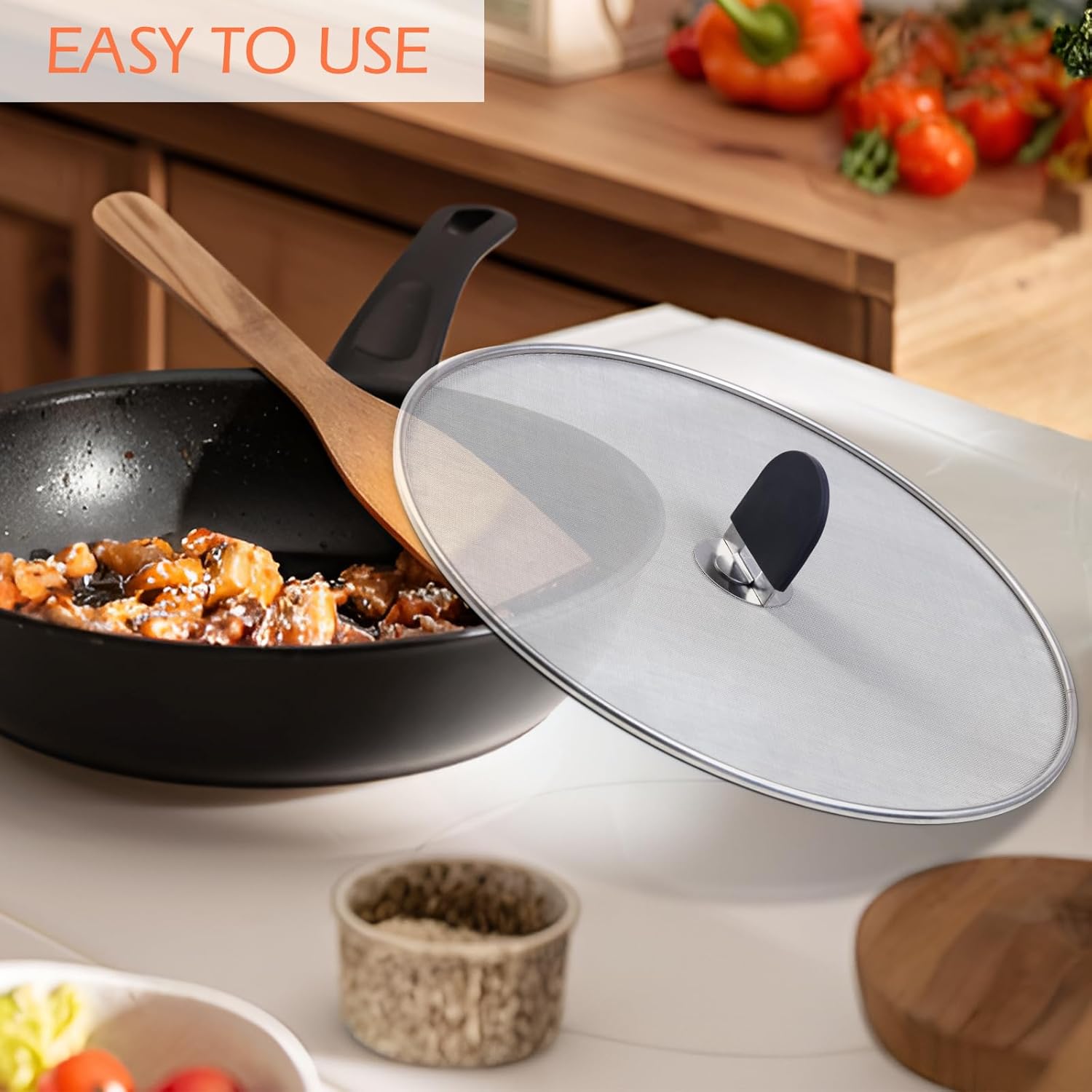 - [Quality made] - Made fine mesh and high-quality stainless steel of grease screens for fry pans and ensure your safety while cooking with this grease splatter guard for frying pan, minimizing the risk caused by oil splashes