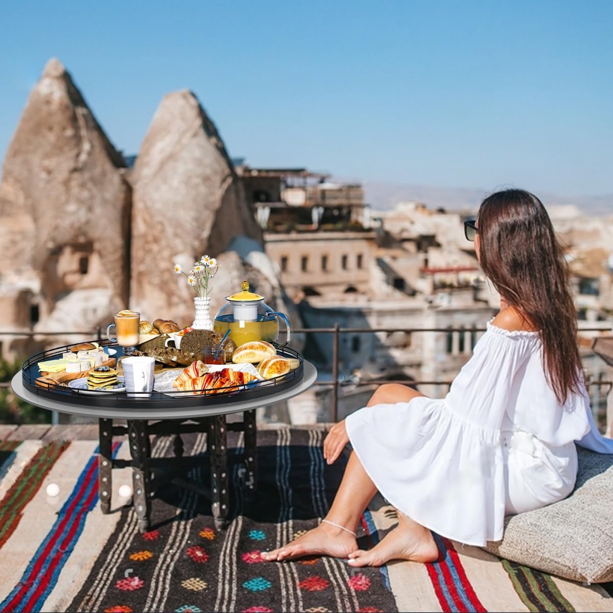 - ๐ ๐๐น๐๐ถ-๐ฃ๐๐ฟ๐ฝ๐ผ๐๐ฒ ๐จ๐๐ฎ๐ด๐ฒ: Perfect for a wide range of occasions and spaces. Whether used as a centerpiece table decorations, a vanity tray in your bathroom, or an organizer on your kitchen, this versatile round tray adapts to your needs in any room