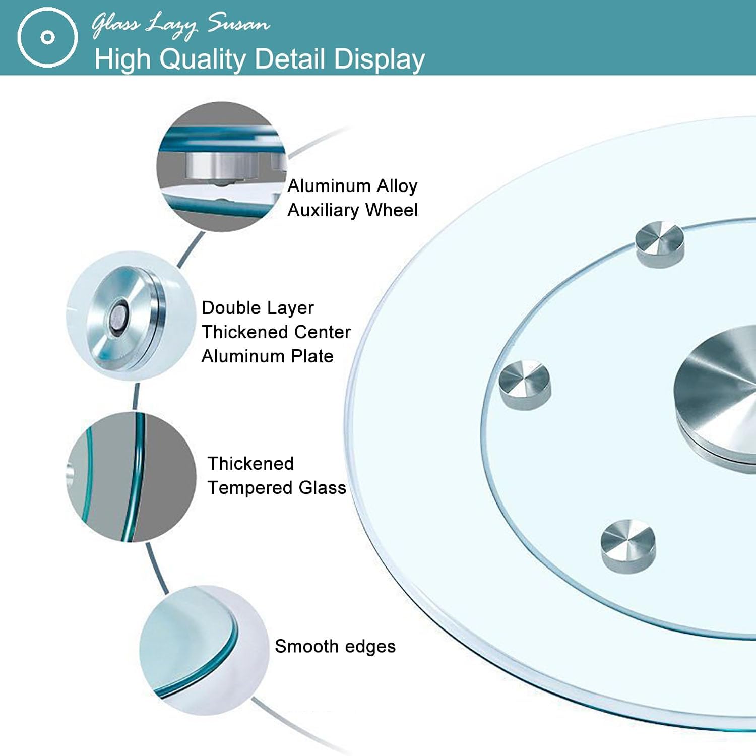 - 【Tempered Glass Construction】Glass Lazy Susan Crafted from high-strength, heat-resistant tempered glass, this is unbreakable, scratch-resistant, and incredibly easy to clean. Carefully polished edges ensure safety for everyday handling