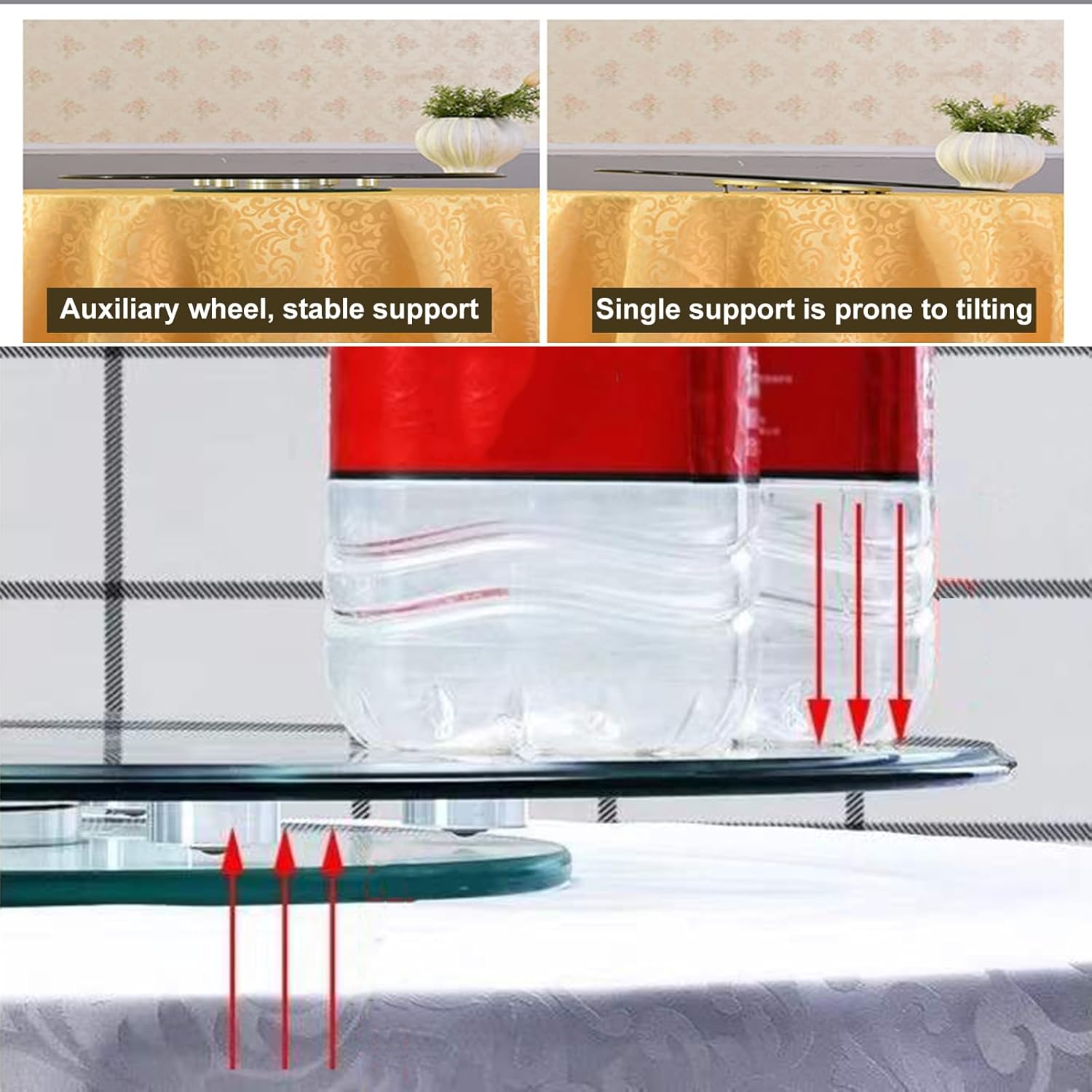 - 【Effortless 360° Rotation & Anti-Tip Stability】 Enjoy smooth, quiet spinning to seamlessly pass food and drinks. Our glass turntable features six auxiliary wheels combined with a central shaft, ensuring stable rotation even with uneven loads – no side tipping or spills
