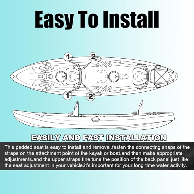 • 4 ADJUSTABLE STRAPS:Penban kayak seat has 2 straps in front, 2 straps in rear allowing the seat to be fixed in place according to different needs, give a wide range of adjustability to accommodate most any kayak, very easy to install and removal.