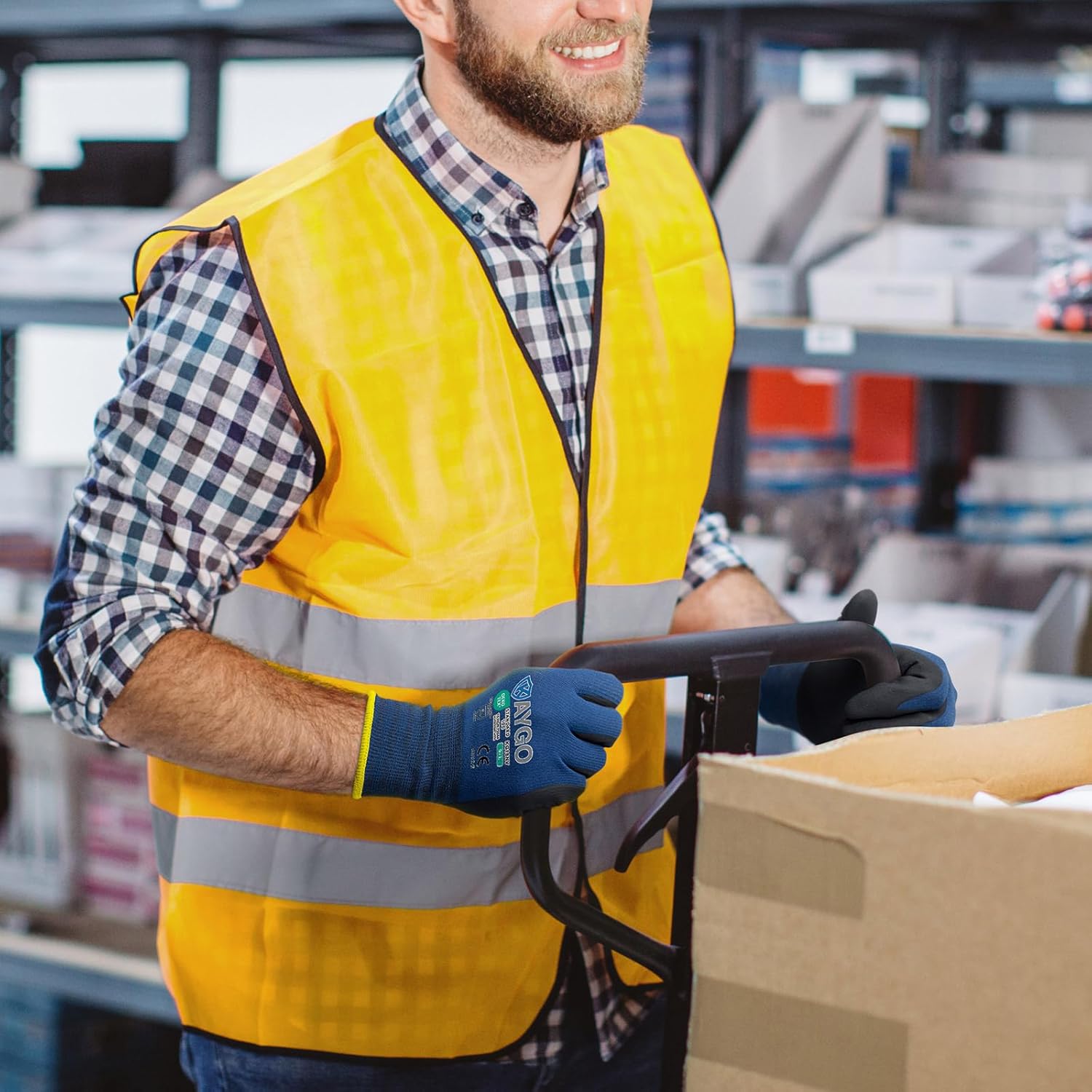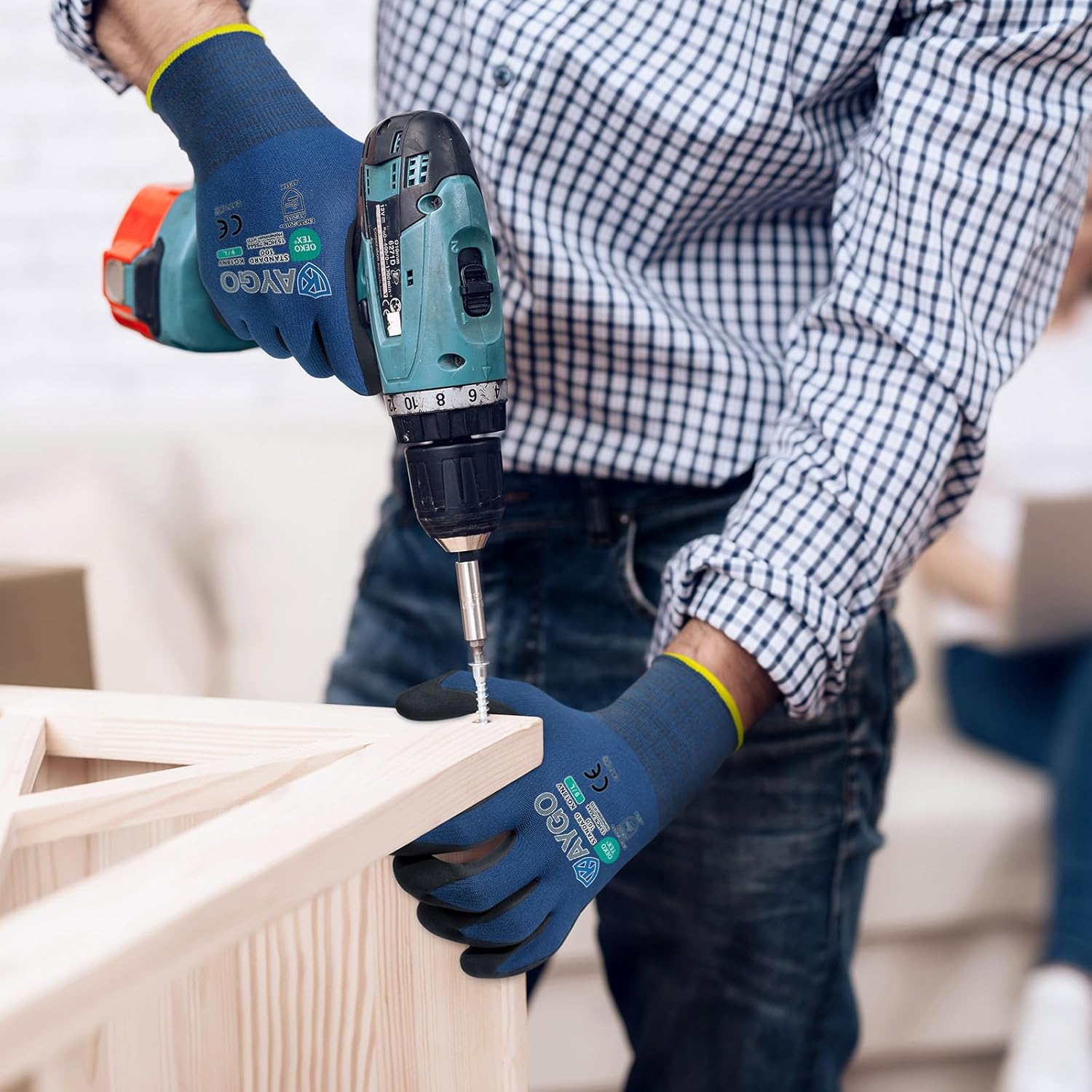 KAYGO Safety Work Gloves MicroFoam Nitrile Coated, 3 Pairs KG18NB,Seamless Knit Nylon Glove for Men and Women, Ideal for Automotive,Warehouse,Construction (L, Dark Blue)