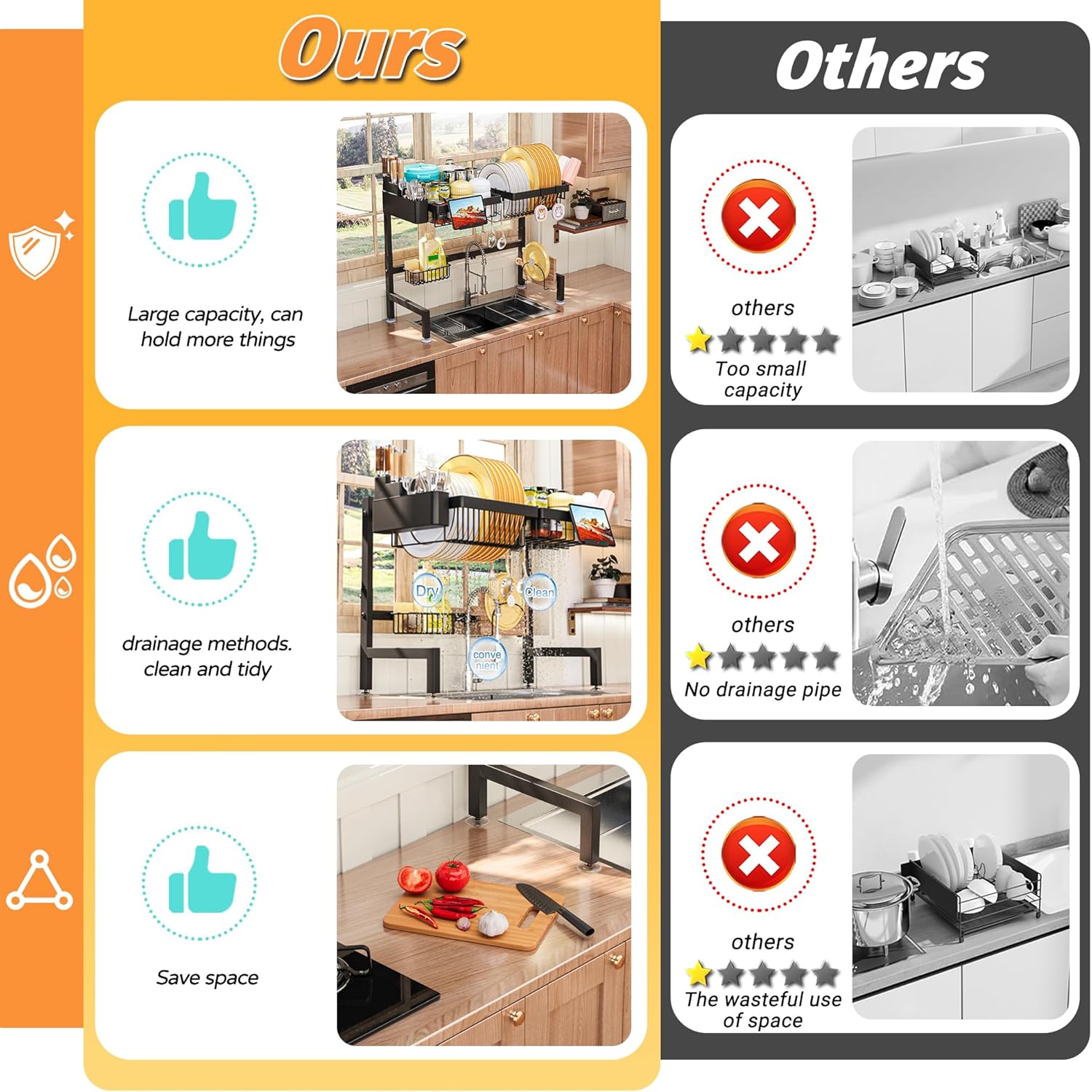 - 【Tips Before Purchase】Please carefully measure the length of your sink at first. Your Sink Length should be ≤35.5 inches and if beyond 35.5", please choose our other over sink dish racks. If there are cabinets over your sink, the vertical space Between Cabinet And Countertop should be at least 33 inches to place dinner plates or pans. So please confirm your sink length and vertical space first before you order!!!