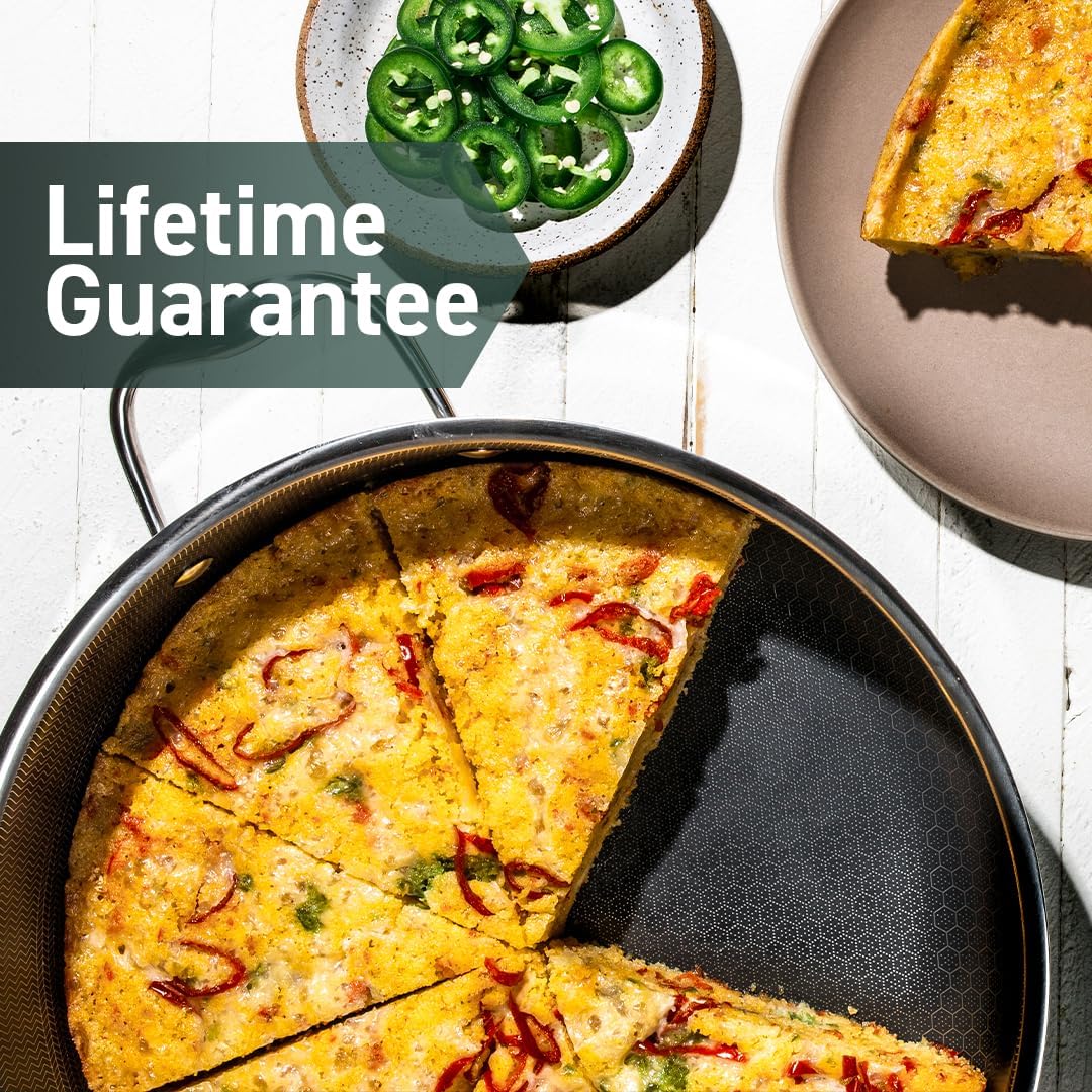 HexClad Hybrid Nonstick 4.5-Quart Deep Sauté Pan with Tempered Glass Lid, Stay-Cool Handle, Dishwasher-Friendly, Oven-Safe Up to 900°F, Induction Ready, Compatible with All Cooktops