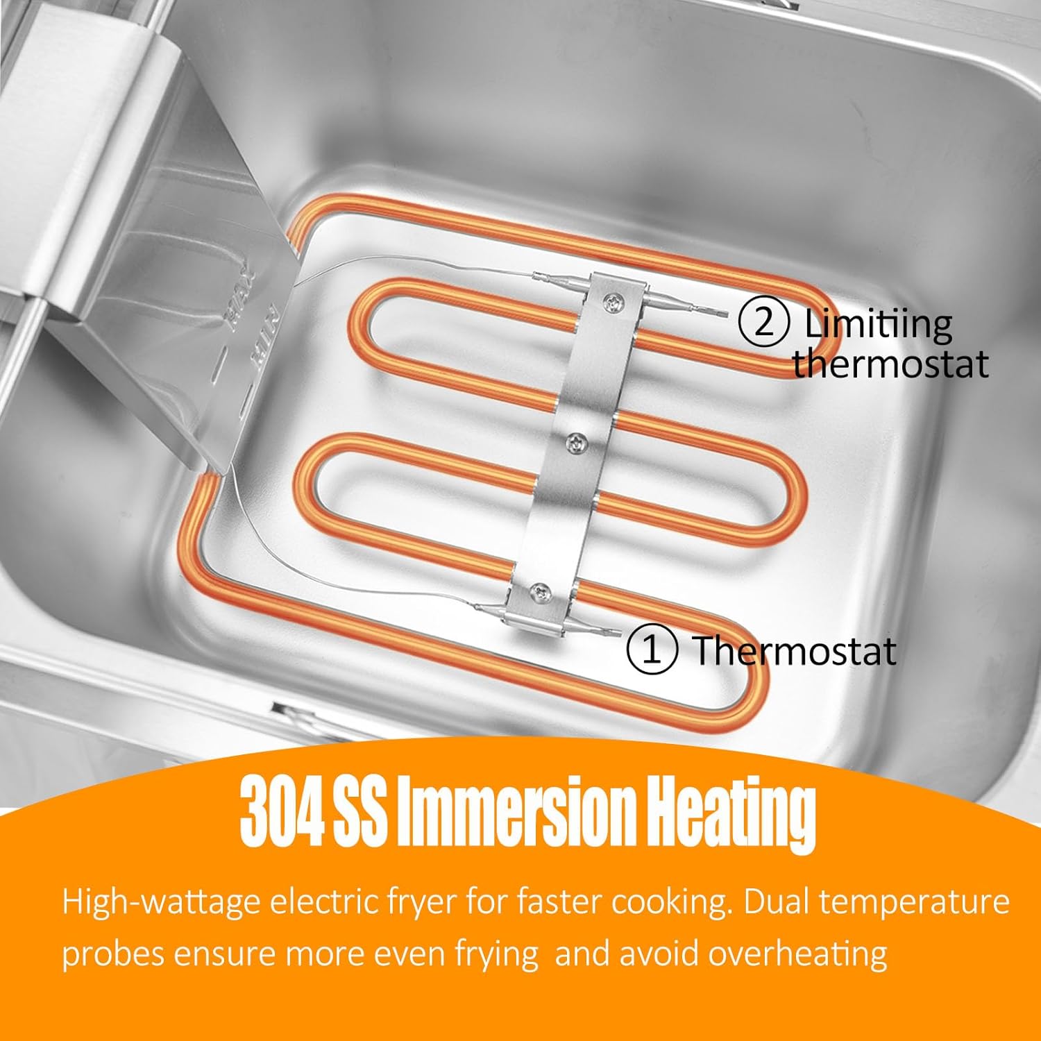 - Durable and Easy Maintenance - Thicken 304 food-grade stainless steel construction of countertop fryer resists corrosion and rust in grease environment. Completely removable design makes it easy to clean, drain, and storage after use