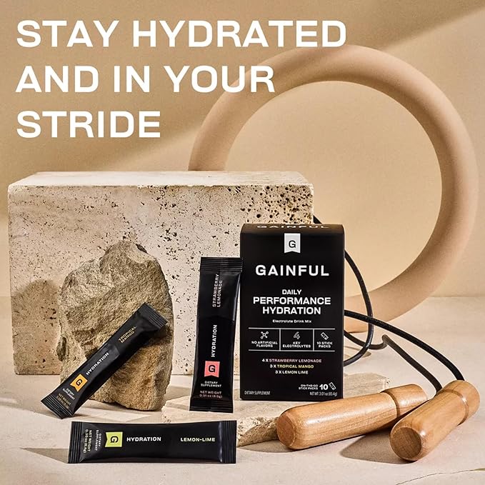 Gainful Hydration Packets Variety Pack, Decaffeinated with Key Electrolytes, Magnesium and Sodium, Energy Support, Low Sugar, 10 Sticks