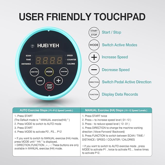 • 【Ultimate Value Package】HUEIYEH Under Desk Elliptical Machine*1, Remote Control *1, Resistance Bands *1, Non Slip Mat *1, all backed by 6 month replacement and lifetime support services. Ready to use right out of the box, this package saves you both money and time on finding other assistive devices!