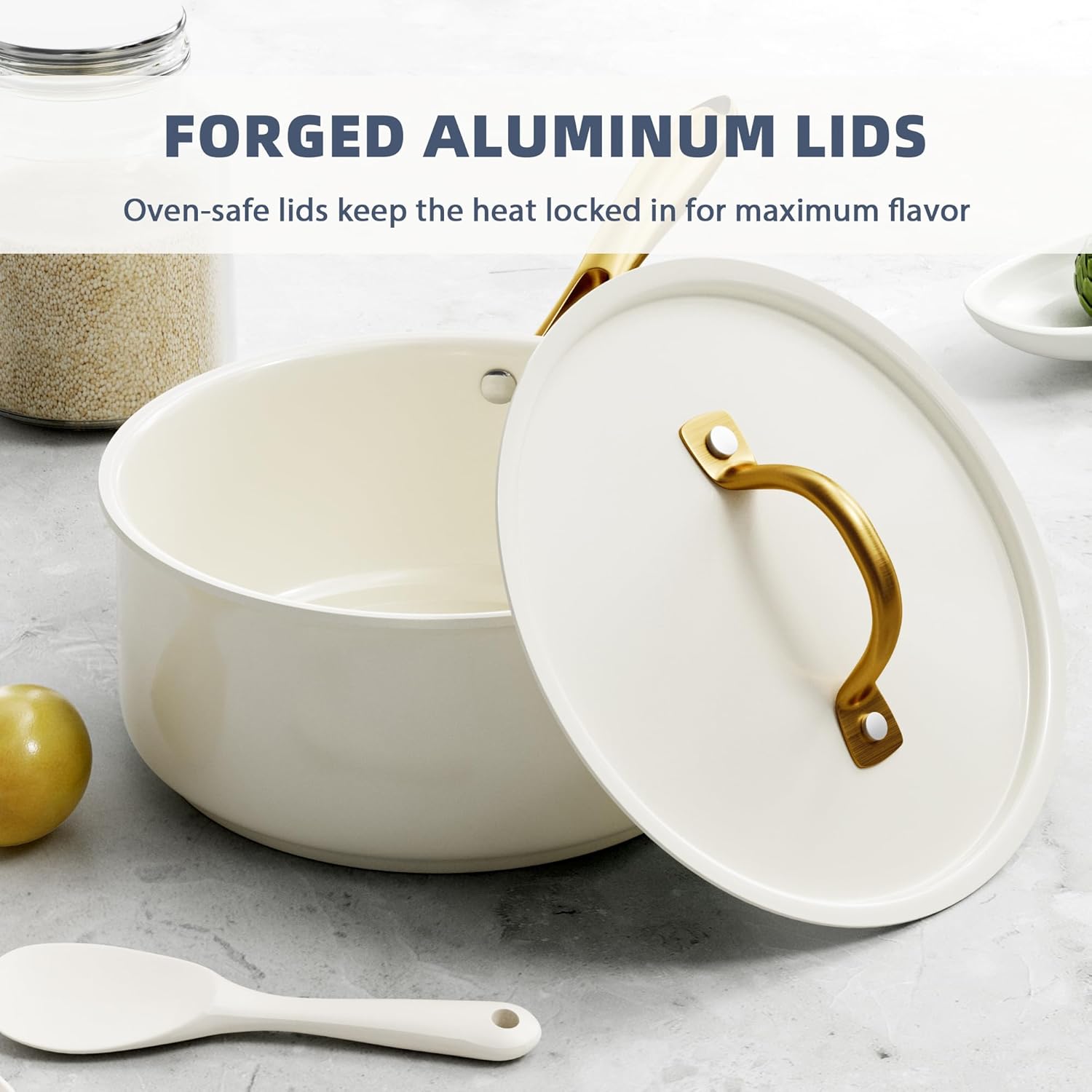 - TOXIN-FREE: This pots and pans set's healthy ceramic nonstick coating is free of PFAS, PFOA, lead, and cadmium, making them safe for you, your family, and the environment.
