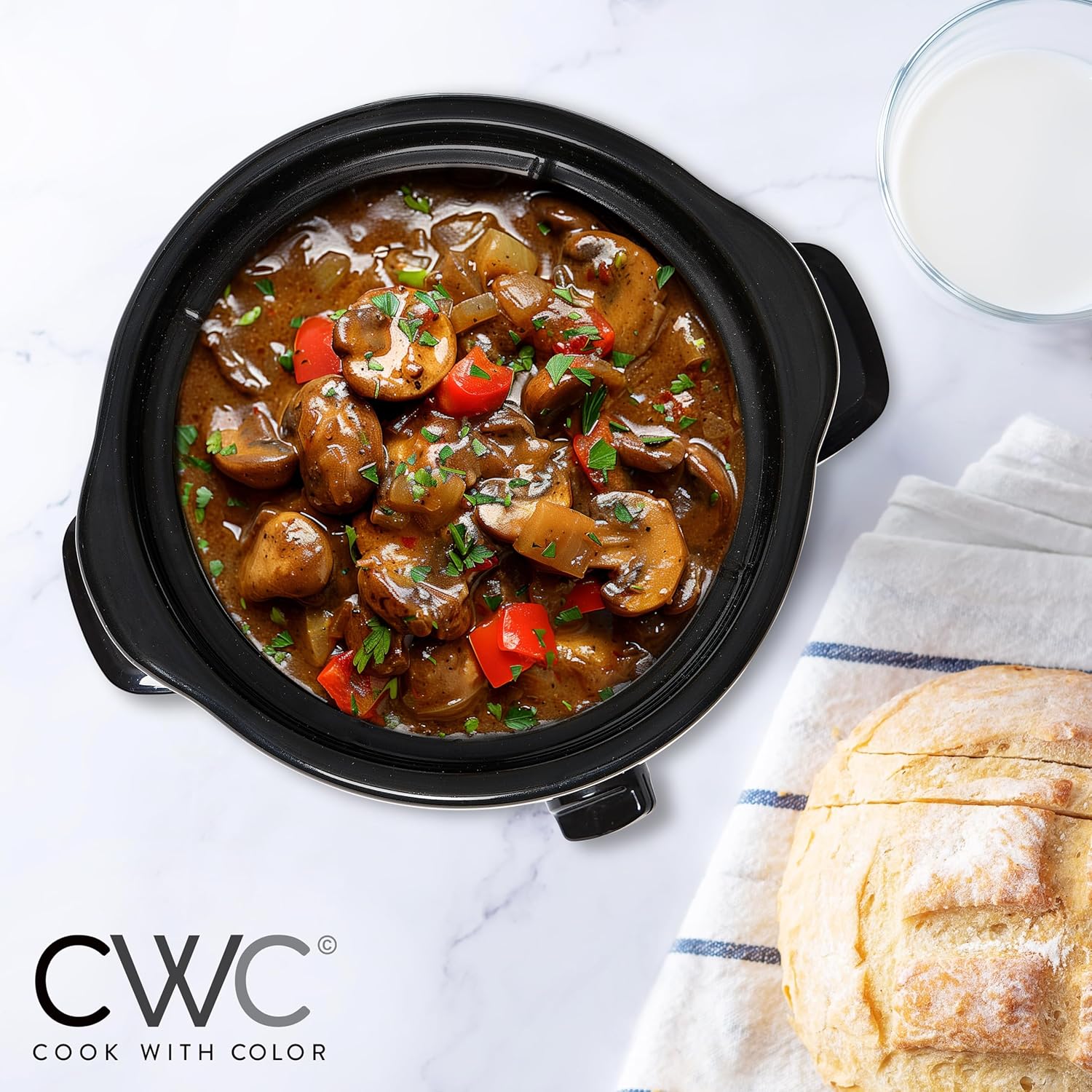 COOK WITH COLOR 2QT Mini Electric Round Slow Cooker - Adjustable Settings, Removable Stoneware Pot, Tempered Glass Lid, Dishwasher Safe, Cool-Touch Side Handles, Black