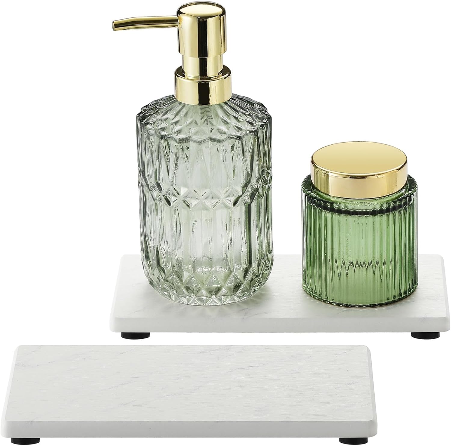 2PCS Diatomite Marble Stone Drying Mat for Kitchen Counter, Water Absorbing Soap Tray Stone Faucet Mat for Bathroom, Quick Dry Splash Guard Sink Protector, Vanity Dish Dispenser Sponge Holder, 8"x3.8"