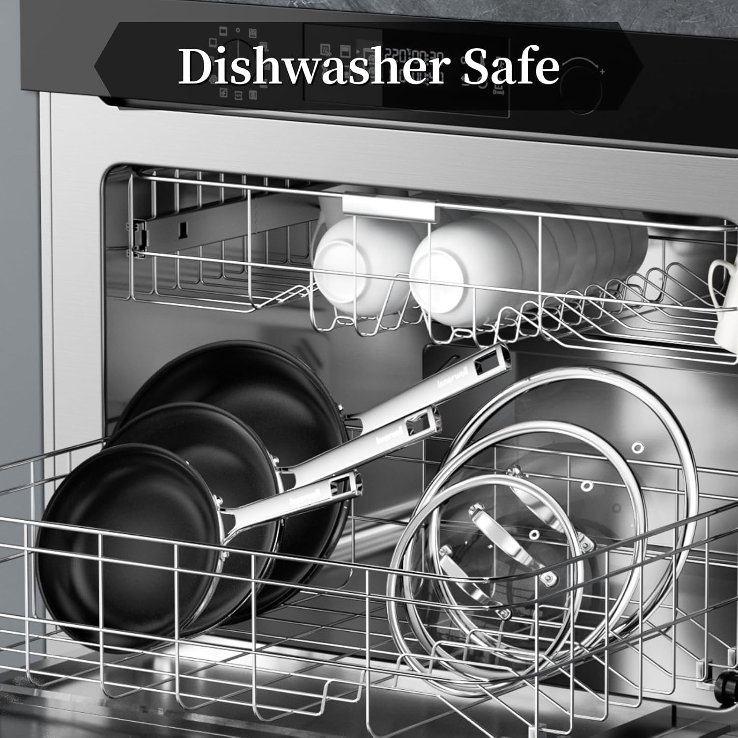 - 【HEALTHY & SAFE】Titanium ceramic non-stick cookware has a titanium alloy protective layer on the surface, which is non-toxic and harmless, and our pans are 100% free of harmful substances such as PFOS, PFOA, and PTFE, which ensures your daily cooking is healthier and safer.