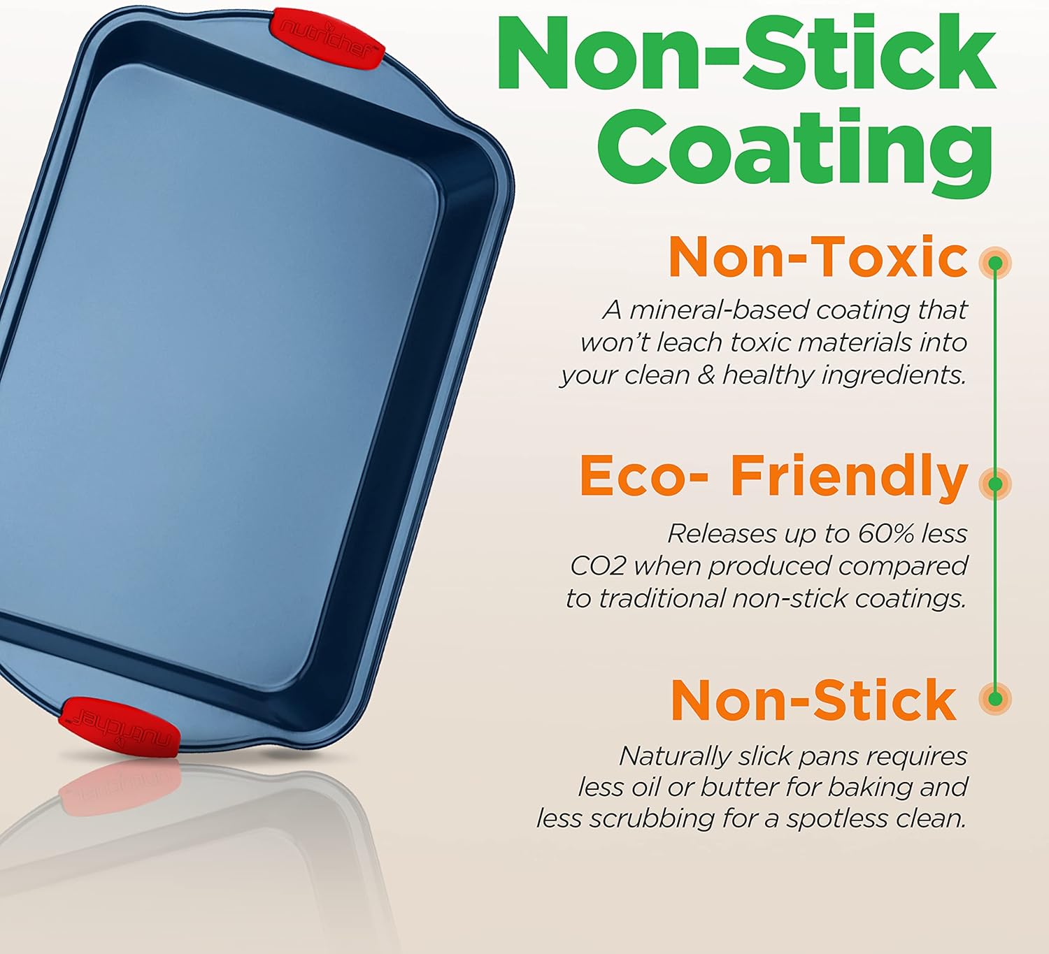 - DELUXE NONSTICK BAKEWARE β Elevate your baking with this bakeware set, featuring stylish blue silicone coating and red silicone handles. Perfect for both professional chefs and home bakers, ensuring effortless food release and even baking every time.