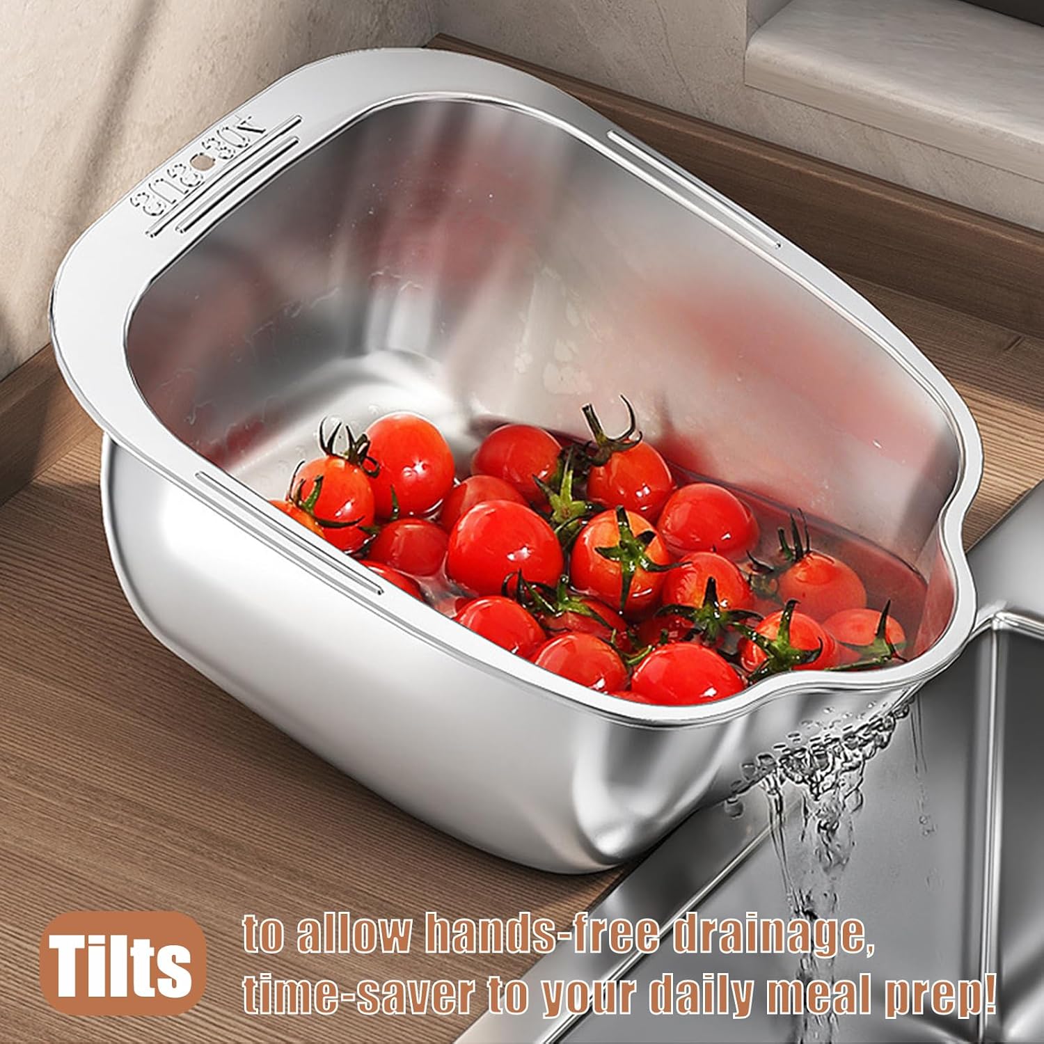 - Efficient and Safe Design: Equipped with evenly fine drainage holes, this colander provides fast draining without compromising the containment of food items. The unique inclined design at the bottom enables quick and easy outflow of water or liquid, while the side drain effectively cleans rice before cooking.
