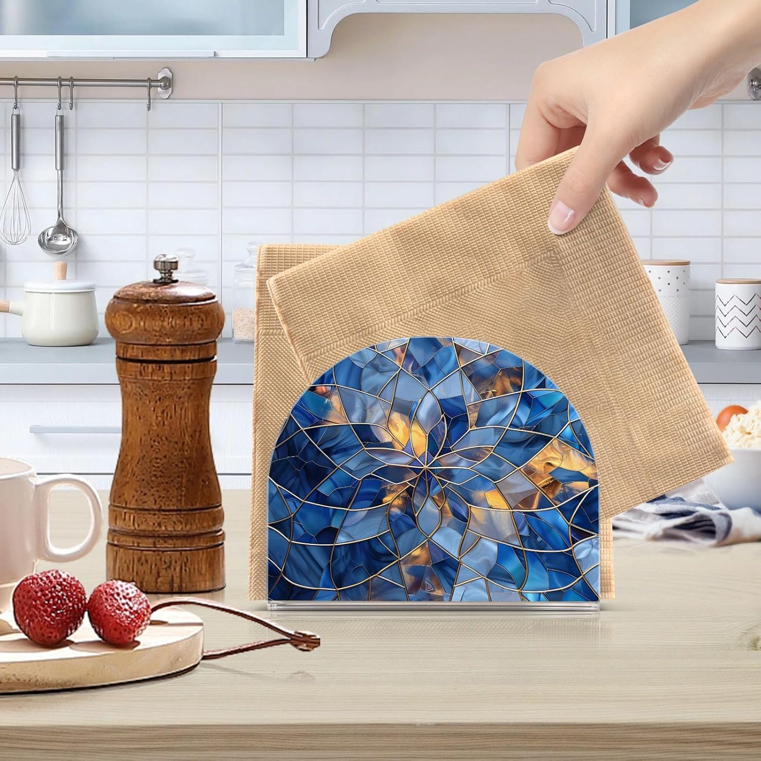 Stained Glass Geometric Pattern Napkin Holder for Table Paper Napkins Holder Acrylic Tissue Dispenser Kitchen Dining Room Bathroom Party Car Decor