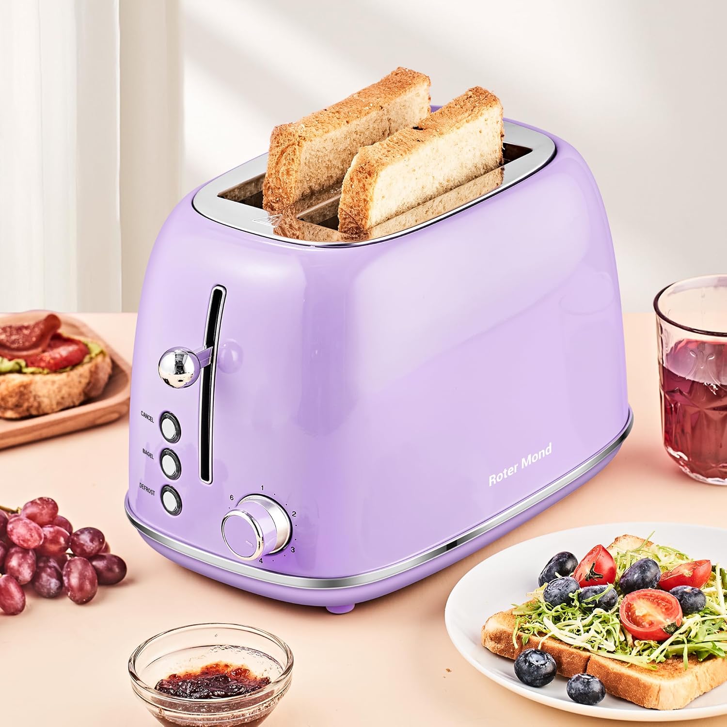 2 Slice Toaster Retro Stainless Steel with Bagel, Cancel, and Defrost Functions, 6 Bread Shade Settings, Extra Wide Slots and Removable Crumb Tray, Lavender-Purple