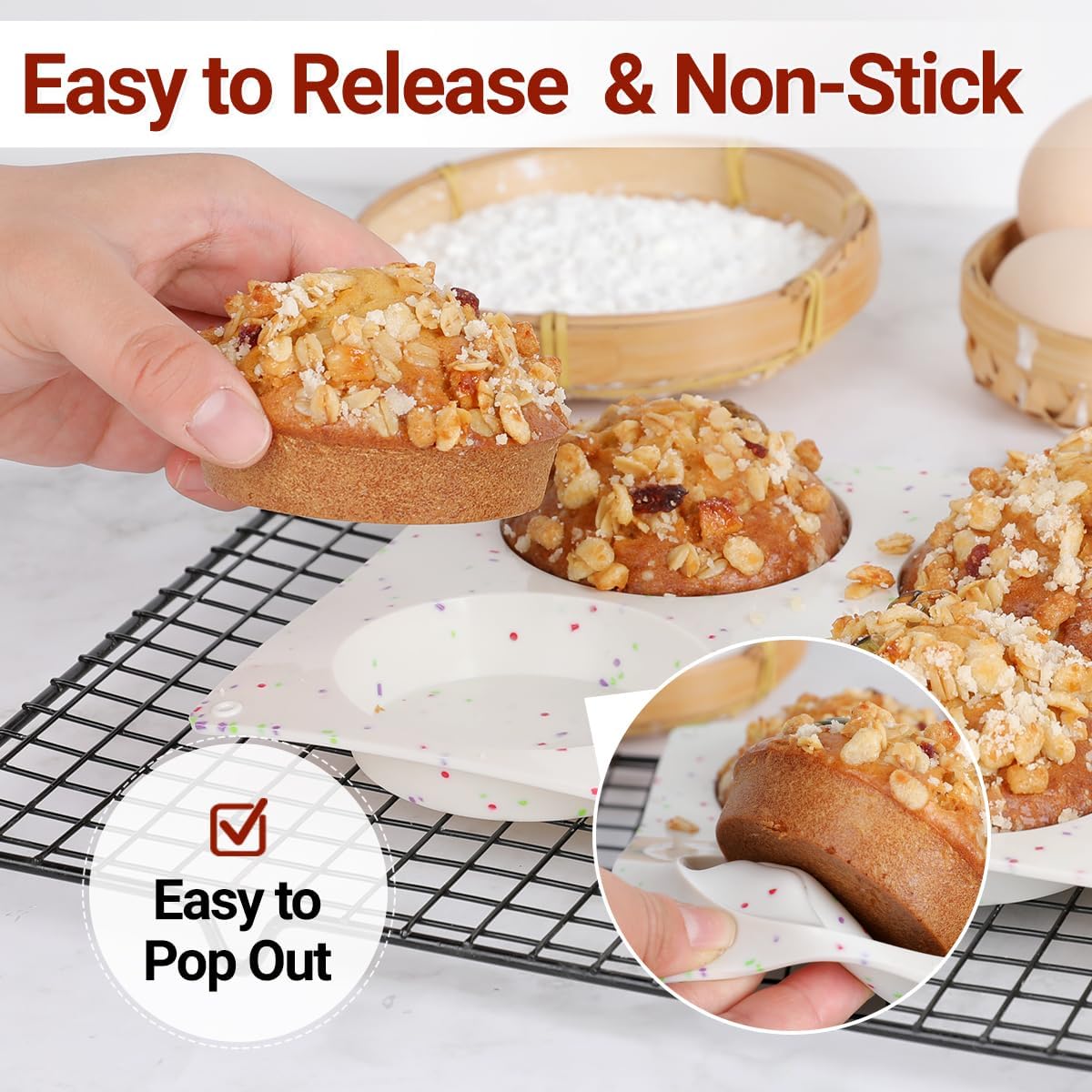Muffin Top Pan, Silicone Egg Molds for Breakfast Sandwiches 3 Inch Round Baking Pan for Oven English Muffins, Whoopie Pies, Corn Bread, Bites, Tarts 2 Pack Confetti